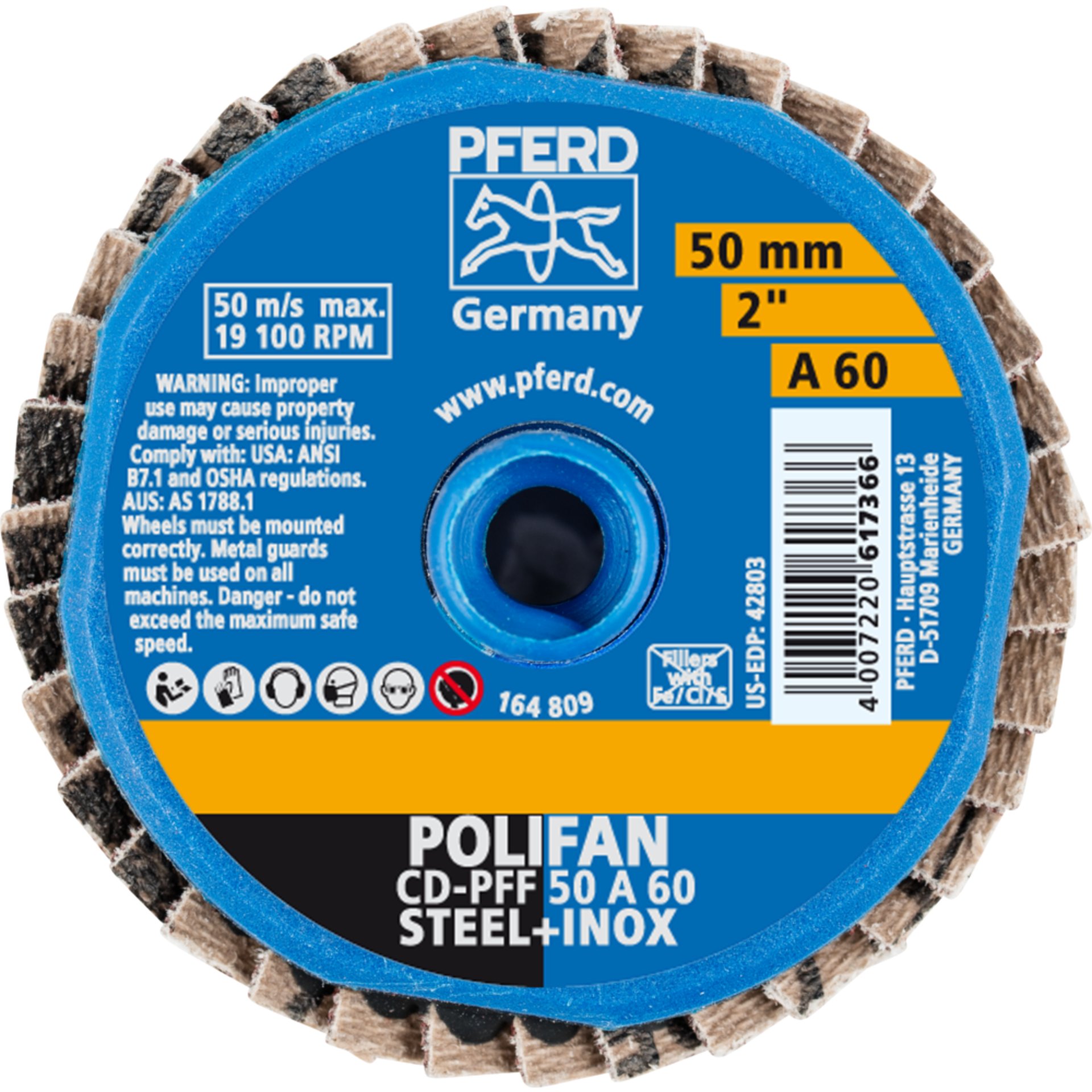 Eigenschaften "Pferd COMBIDISC Korund Mini-POLIFAN CD Ø 50mm A60 für universelle Anwendungen"