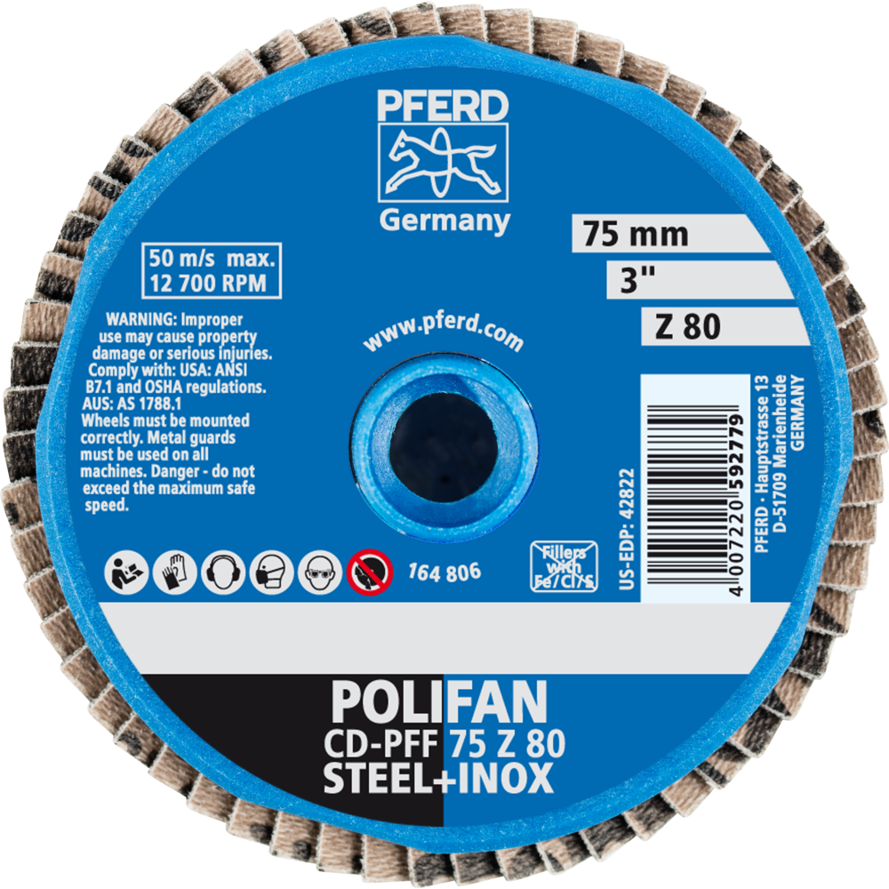 Eigenschaften "Pferd COMBIDISC Zirkon Mini-POLIFAN CD Ø 75 mm Z80 für gehärteten Stahl"