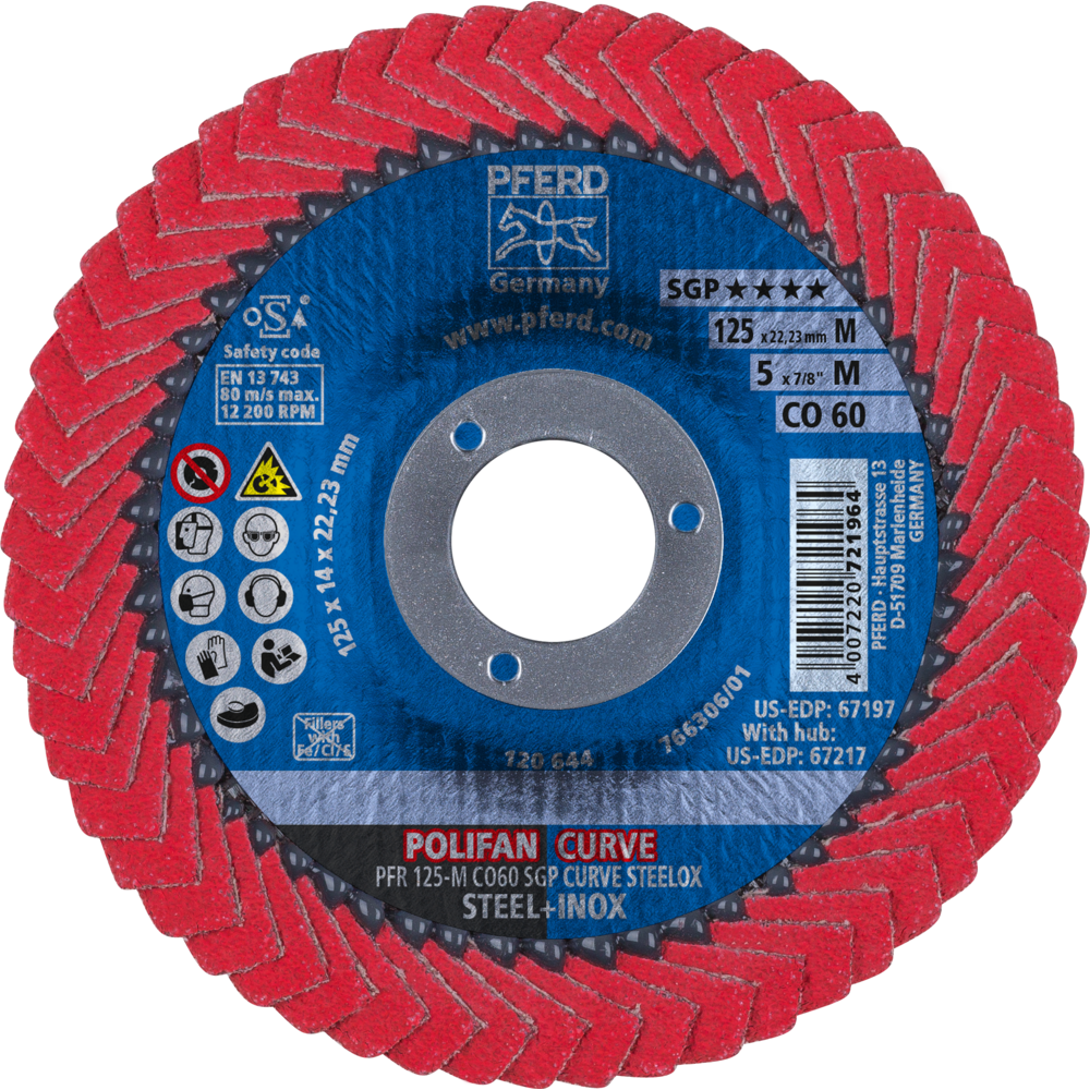 Eigenschaften "Pferd POLIFAN CURVE Fächerscheibe PFR 125x22,23 mm Breite M CO60 SGP STEELOX für"