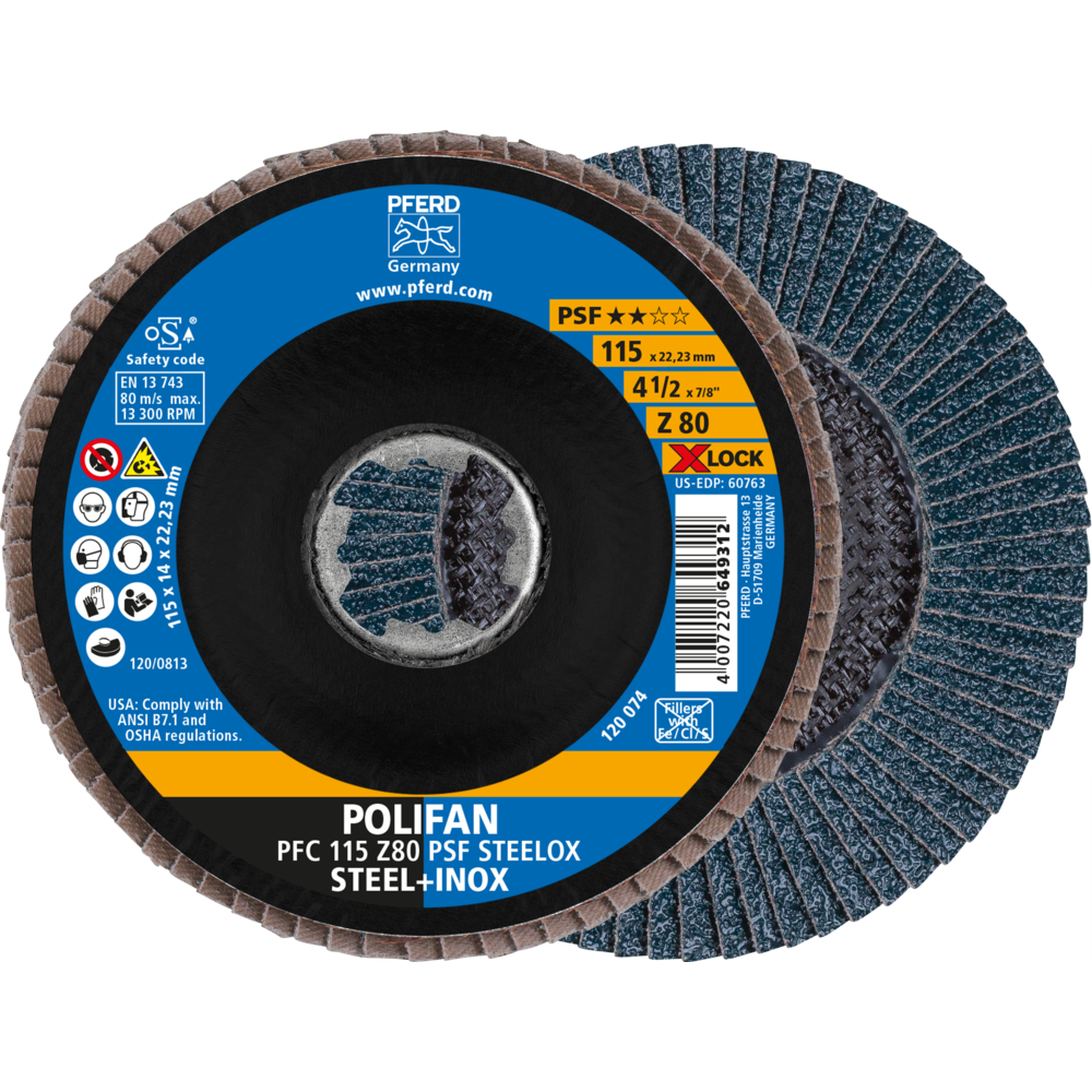 Produktinformationen "Pferd POLIFAN Fächerscheibe PFC 115 mm X-LOCK konisch Z80 Uni.-Linie PSF STEELOX"