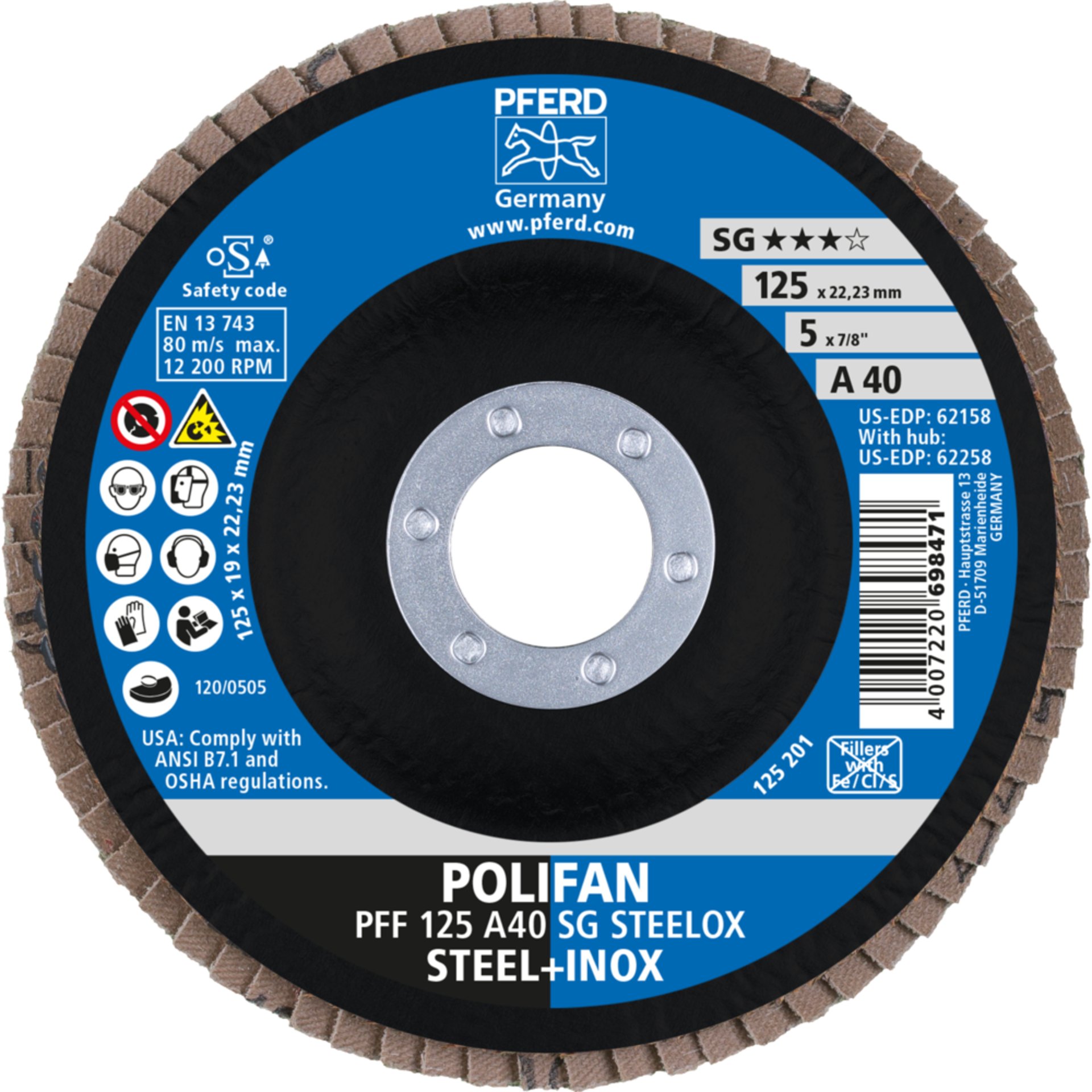 Produktinformationen "Pferd POLIFAN Fächerscheibe PFF 125x22,23 mm flach A40 Leistungslinie SG STEELOX"