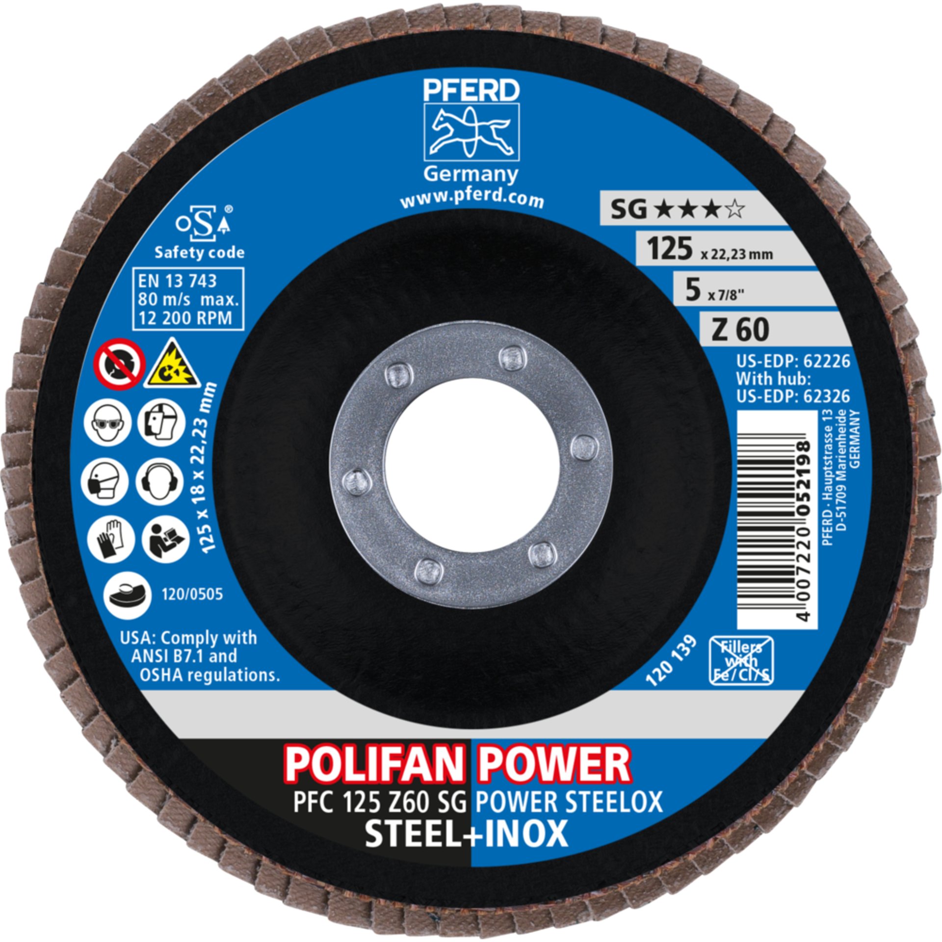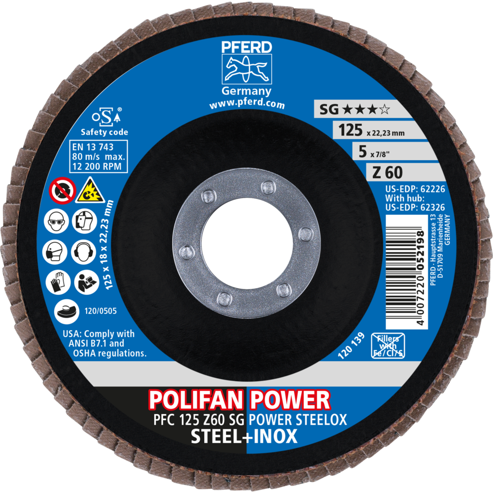 Produktinformationen "Pferd POLIFAN POWER Fächerscheibe PFC 125x22,23 mm konisch Z60 SG STEELOX"
