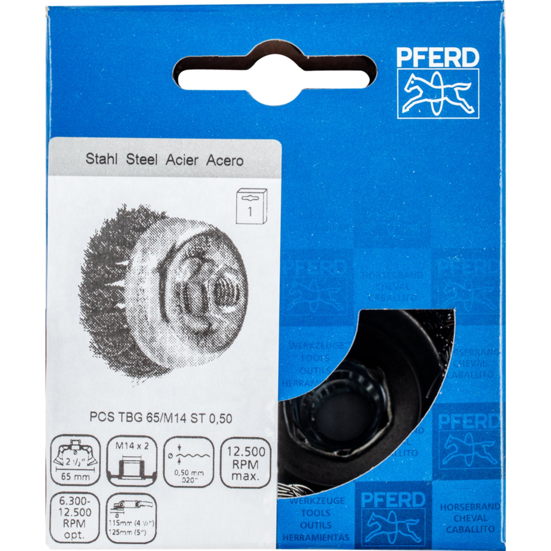Produktinformationen "Pferd Topfbürste gezopft TBG Ø 65 mm M14 Stahl-Draht-Ø 0,50mm Winkelschleifer"