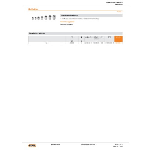 Eigenschaften "Picard Keilhülse Hammergröße=Gr. 2"