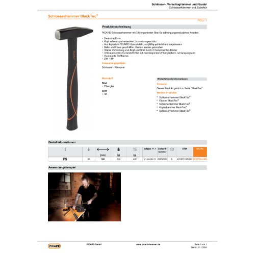 Variante: | Picard Schlosserhammer BlackTec® L=300 mm, 300g |