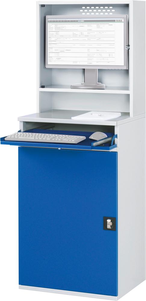 Produktinformationen "RAU Computer-Schrank B650xT520xH1770 mm RAL 7035/5010 stationär Gehäuse mit Tür"
