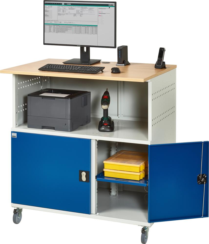 Produktinformationen "RAU Computer-Tisch B1100xT800xH1100 mm RAL 7035/5010 mobil ohne Monitorgehäuse"
