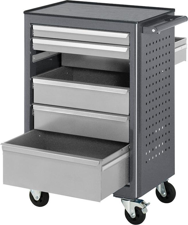 Diese Rollwerkbänke haben beidseitig ausziehbare Schubladen.