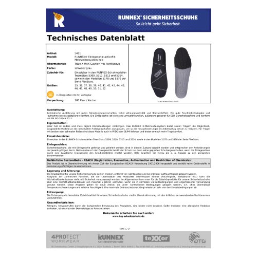 Antistatische Ausführung mit guten Dämpfungseigenschaften, hoher Atmungsaktivität und Rückstelleffekt.