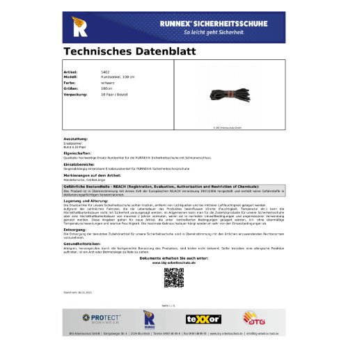 Einsatzgebiete: Qualitativ hochwertige Ersatz-Rundsenkel für die RUNNEX-Sicherheitsschuhe.