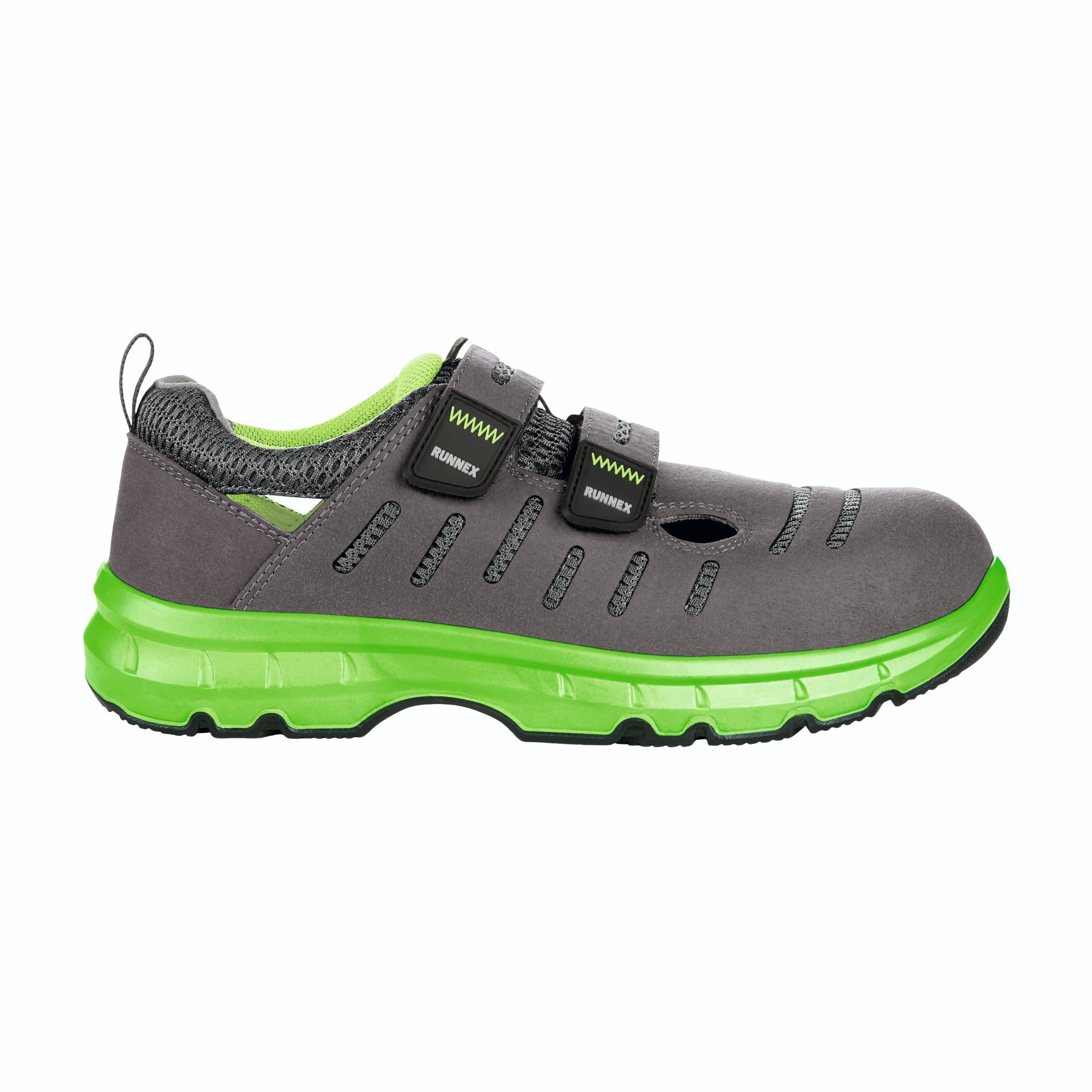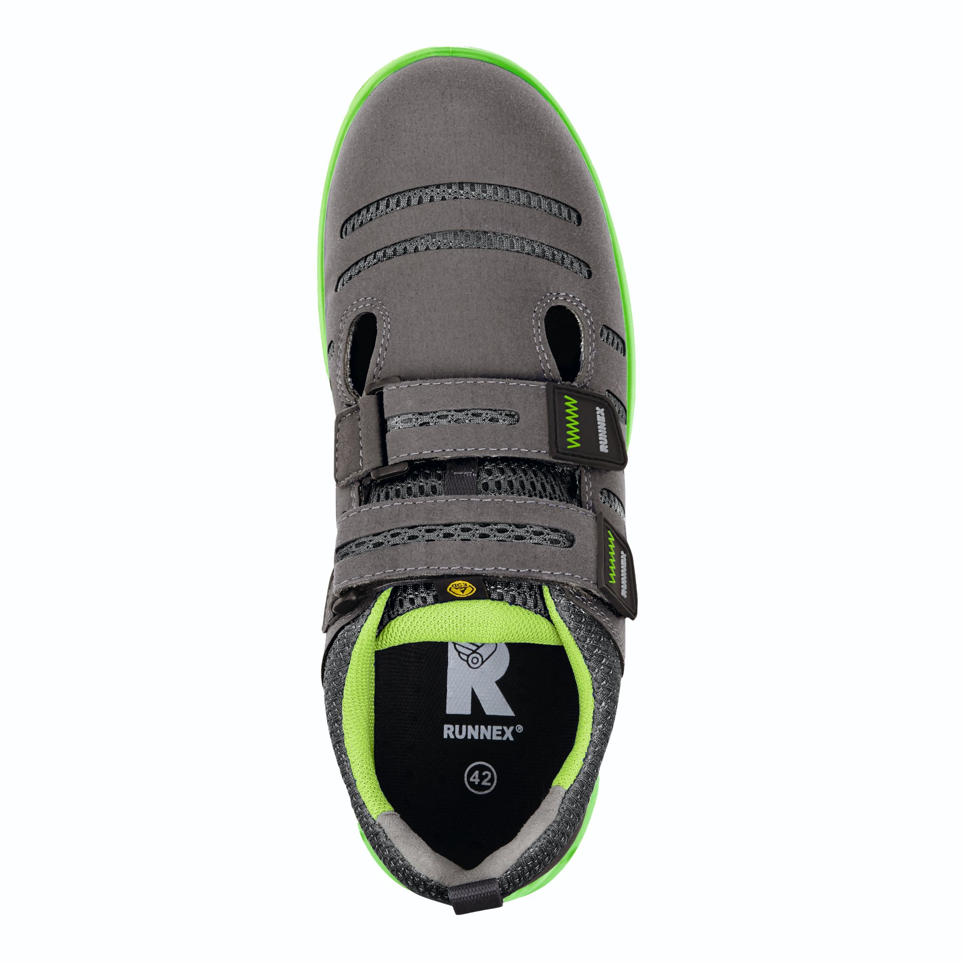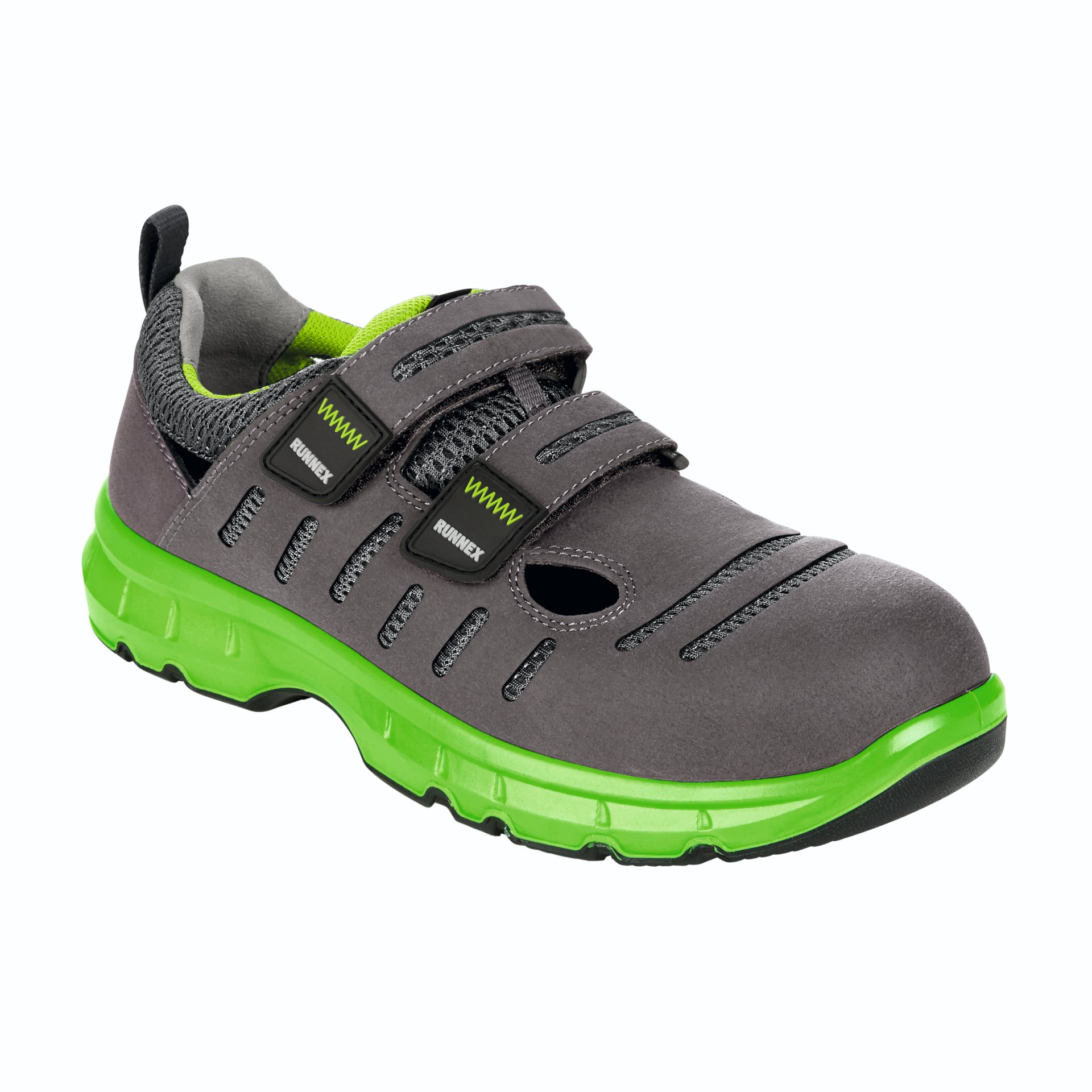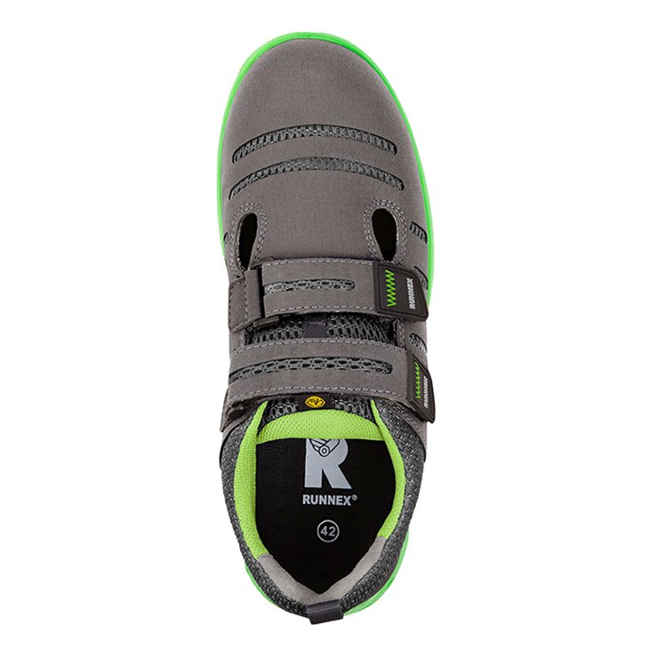 Produktinformationen "RUNNEX® S1P-ESD-Sicherheitsklettsandalen FlexStar 44, grau/grün"
