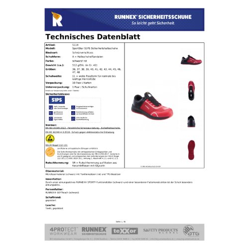 Eigenschaften "RUNNEX® S1PS-ESD-Sicherheitshalbschuhe SportStar 38, schwarz/rot"