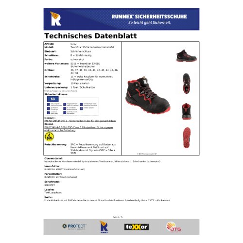 | Normen: | EN ISO 20345:2011 S3, EN 61340-4-3:2001, DGUV112-191 |