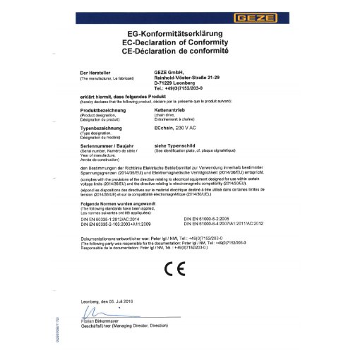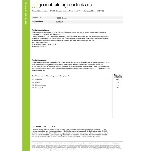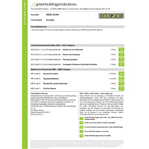 | Variante: | GEZE RWA-Elektrokettenantrieb, ECchain, 230V AC, DL-R,RAL 9005 |