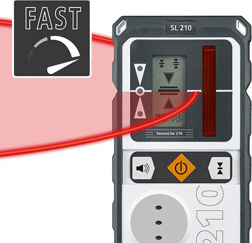 Lieferung: Mit 4 Mignon-Akkus 1,2 V AA/HR6, Ladegerät/Netzteil mit internationalem Adapter, SensoLite 210, Leichtstativ 150 cm, Stativ-/Wandhalterung, Universalhalterung, Teleskop-Nivellierlatte LT 4 m, Fernbedienung, Tragegurt und Tragekoffer.