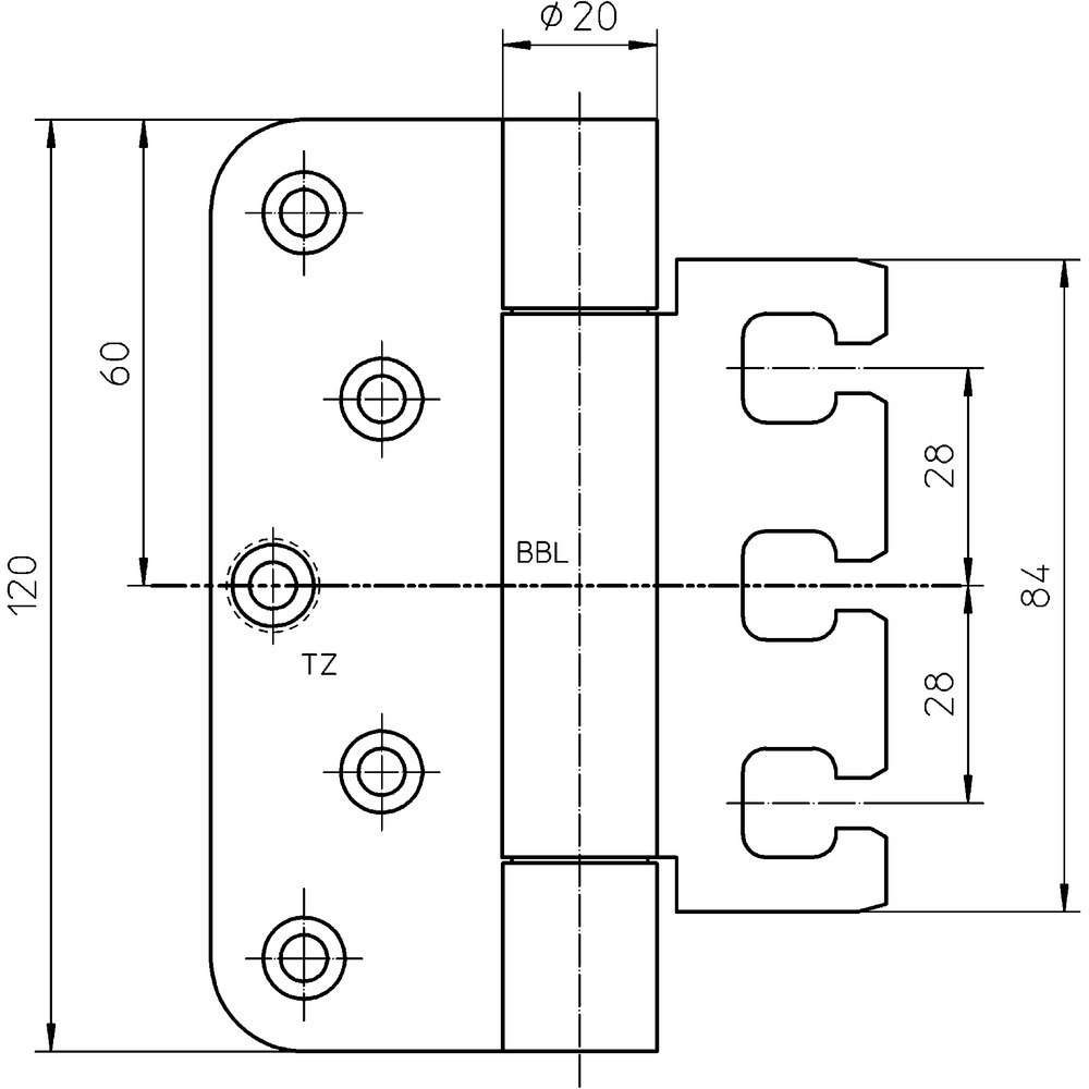 | Befestigungsart Flügelteil: | zum Anschrauben |