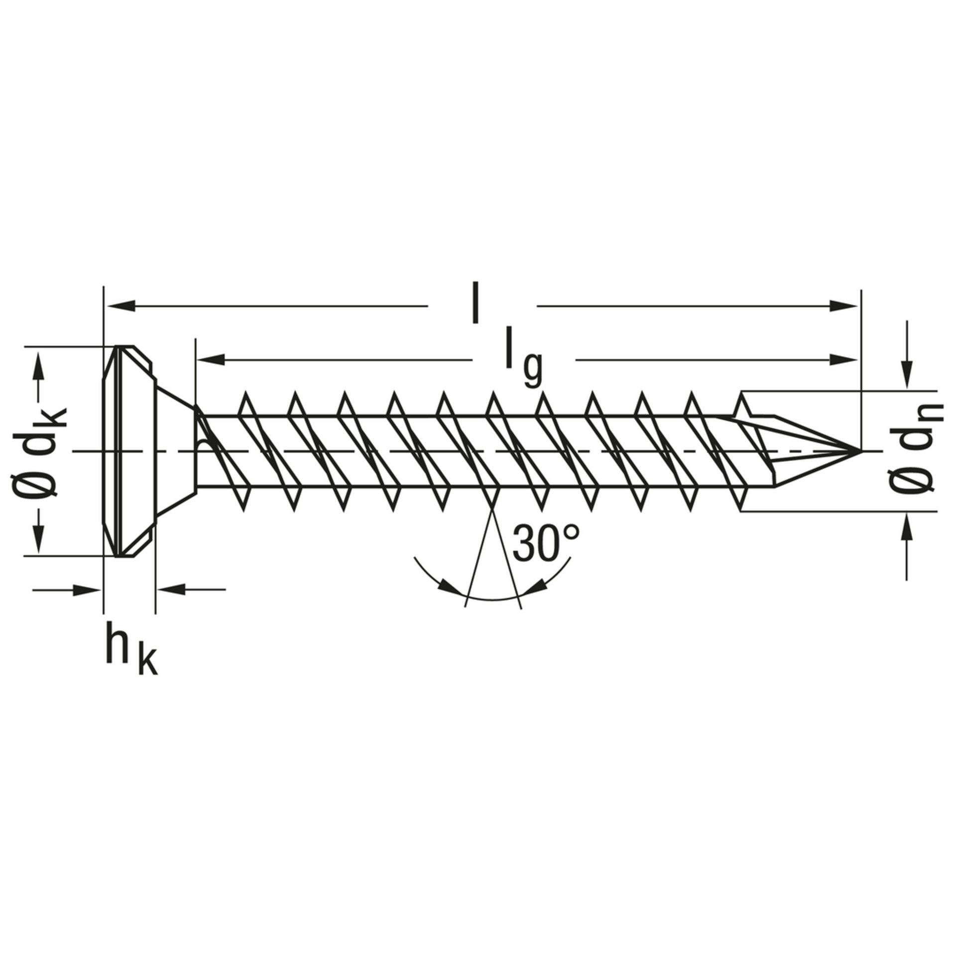 Eigenschaften "SPAX FEX Beschlagschraube, 4 x 28 mm, 2000 Stück, Doppelganggewinde, Senkkopf, Kreuzschlitz H2, CUT-Spitze, Titan Silber"
