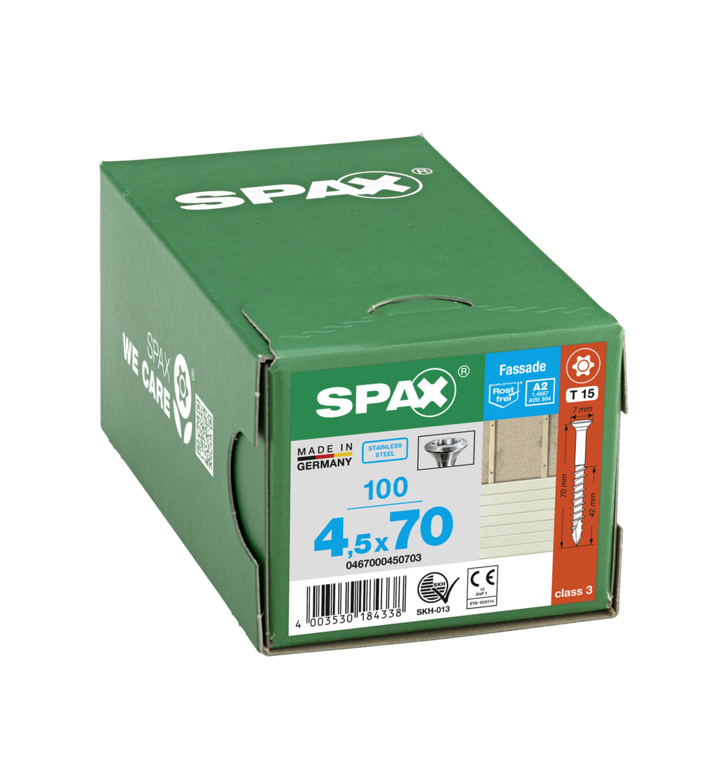| Variante: | SPAX Fassadenschraube, 4,5 x 70 mm, 100 Stück, Teilgewinde, Linsensenkkopf extra klein, T-STAR plus T15, CUT-Spitze, Edelstahl rostfrei A2 - 0467000450703 |