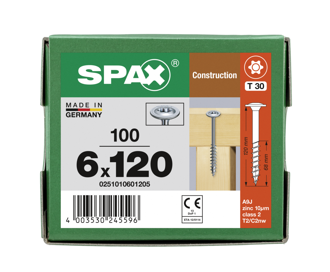 | Variante: | SPAX HI.FORCE, 6 x 120 mm, 100 Stück, Teilgewinde, Tellerkopf, T-STAR plus T30, 4CUT, WIROX - 0251010601205 |