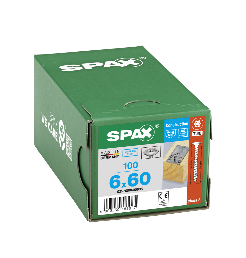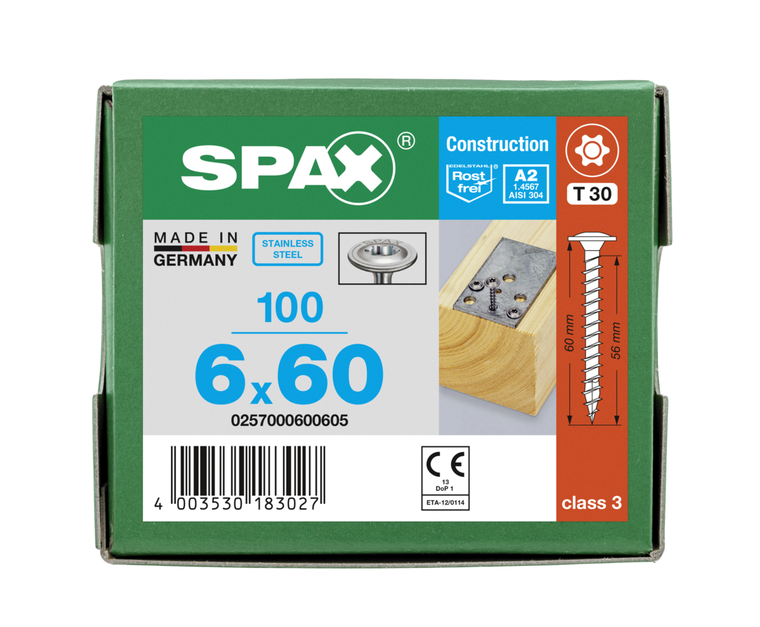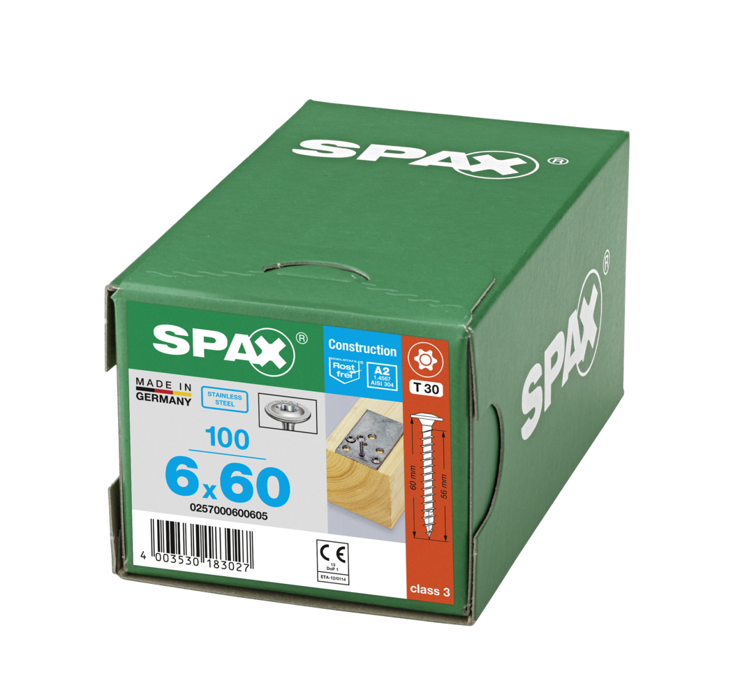 | Variante: | SPAX HI.FORCE, 6 x 60 mm, 100 Stück, Vollgewinde, Tellerkopf, T-STAR plus T30, 4CUT, Edelstahl rostfrei A2 - 0257000600605 |