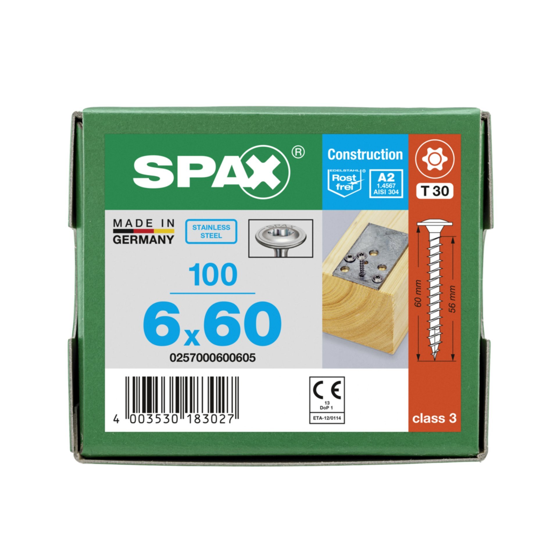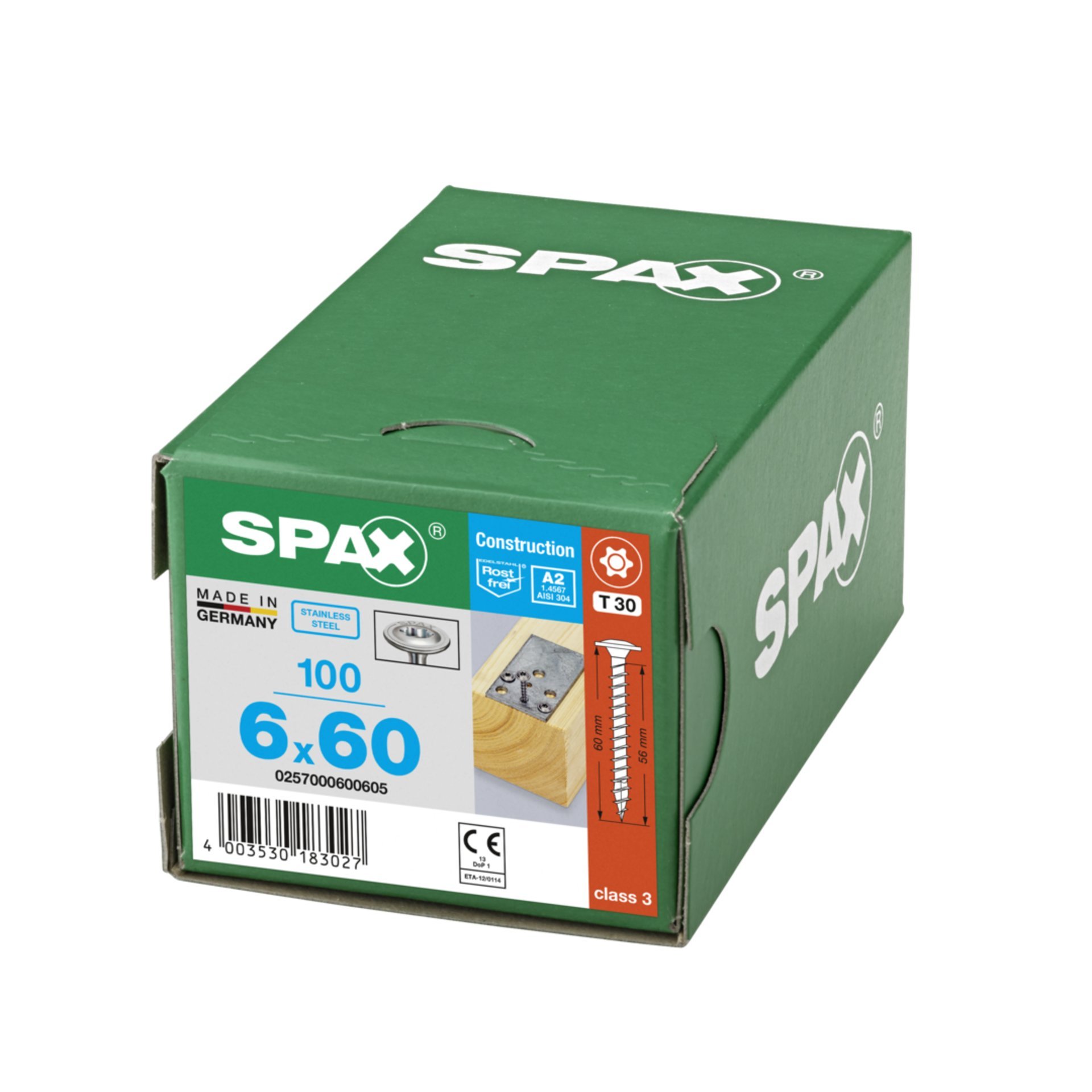 SPAX HI.FORCE, 6 x 60 mm, 100 Stück, Vollgewinde, Tellerkopf, T-STAR plus T30, 4CUT, Edelstahl rostfrei A2