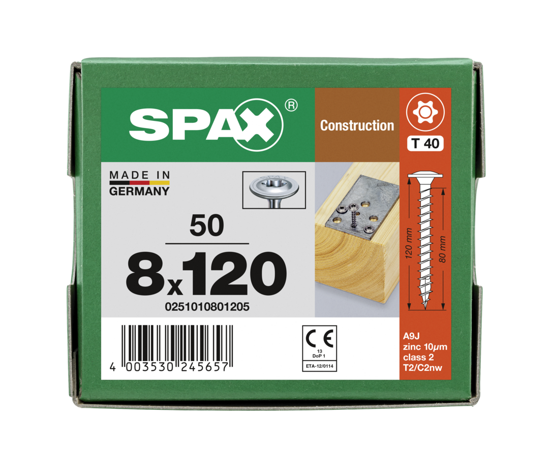 | Variante: | SPAX HI.FORCE, 8 x 120 mm, 50 Stück, Vollgewinde, Tellerkopf, T-STAR plus T40, 4CUT, WIROX - 0251010801205 |