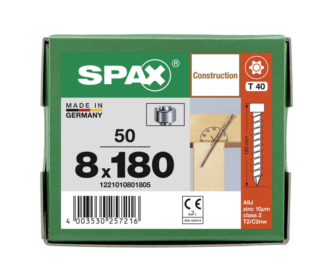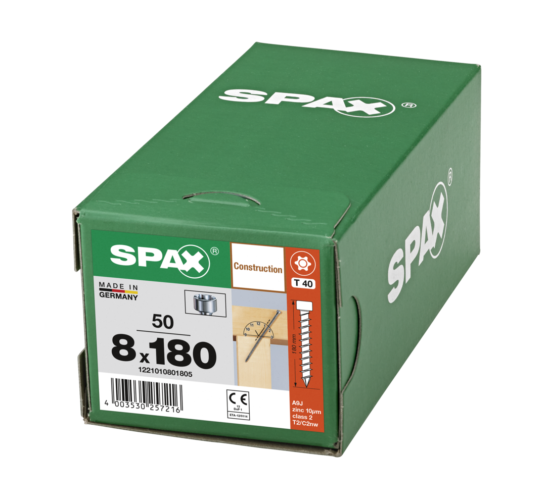 Variante: | SPAX IN.FORCE, 8 x 180 mm, 50 Stück, Vollgewinde, Zylinderkopf, T-STAR plus T40, CUT-Spitze, WIROX - 1221010801805 |