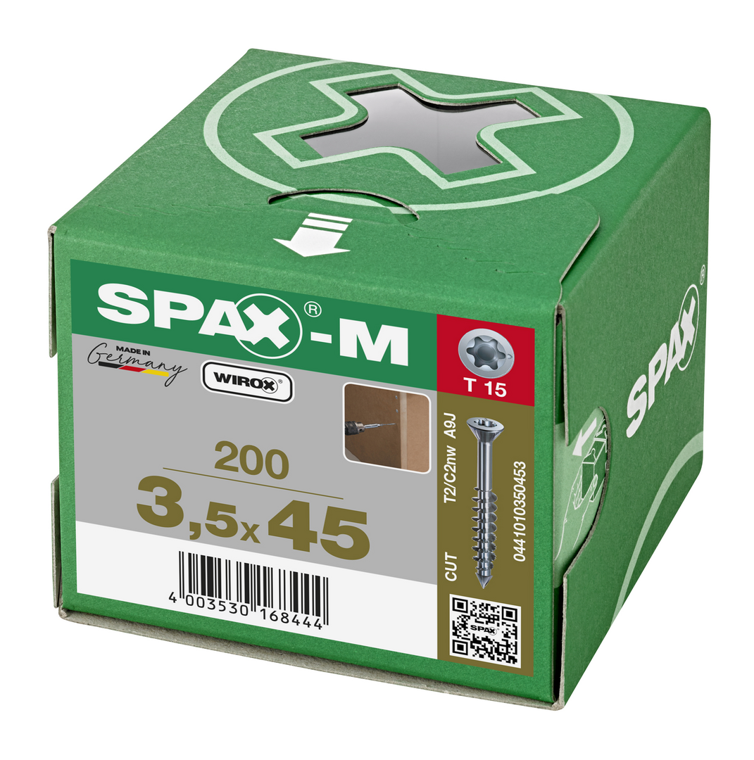 Produktinformationen "SPAX SPAX-M, 3,5 x 45 mm, 200 Stück, Teilgewinde, Senkkopf, T-STAR plus T15, CUT-Spitze, WIROX"