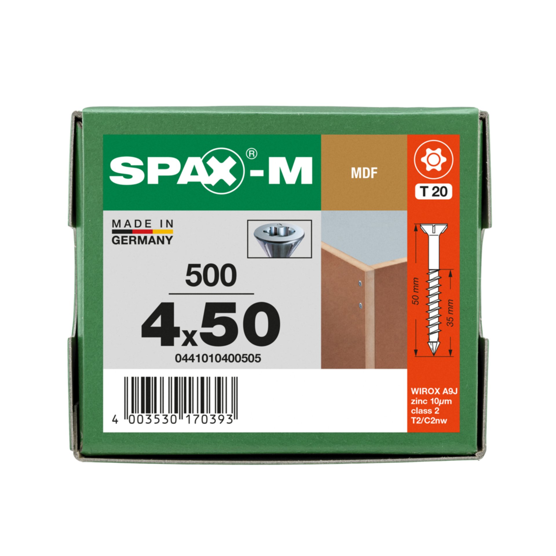 | Variante: | SPAX-M, 4,0 x 50 mm, 500 Stück, Teilgewinde, Senkkopf, T-STAR plus T20, CUT-Spitze, WIROX - 0441010400505 |