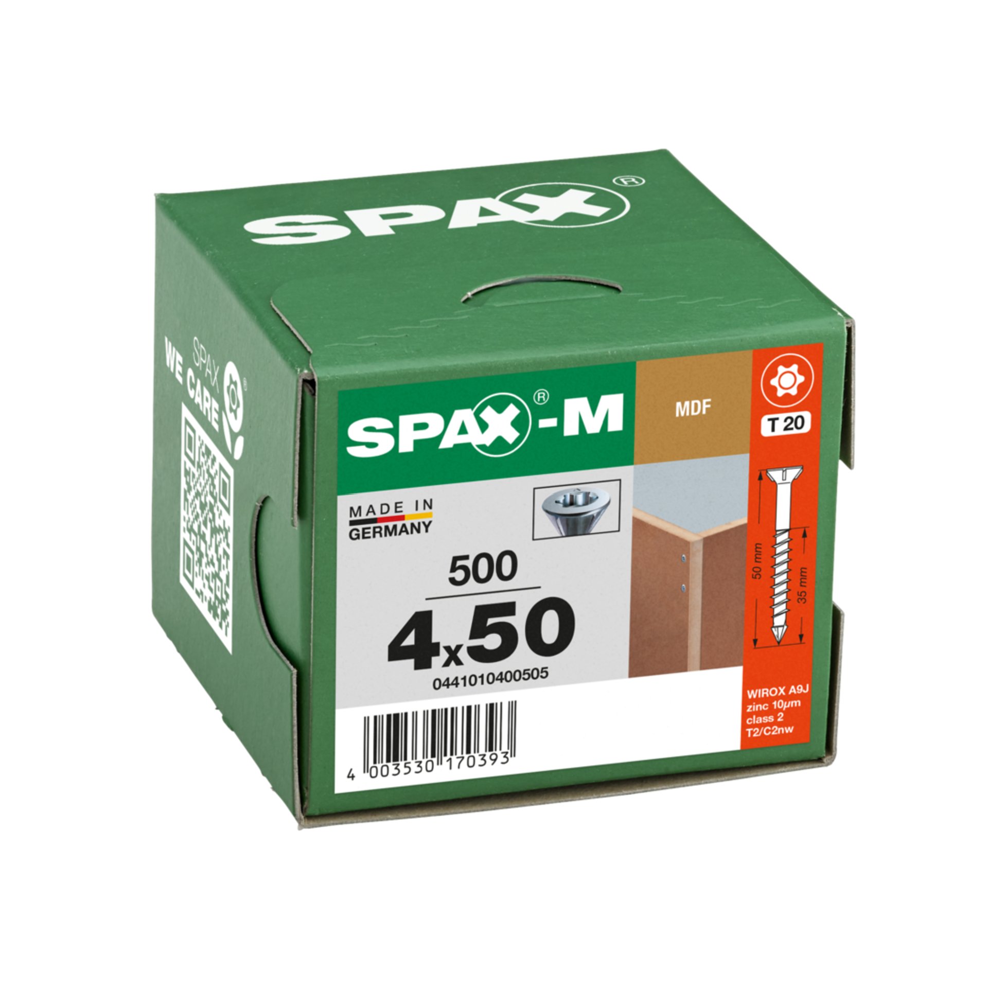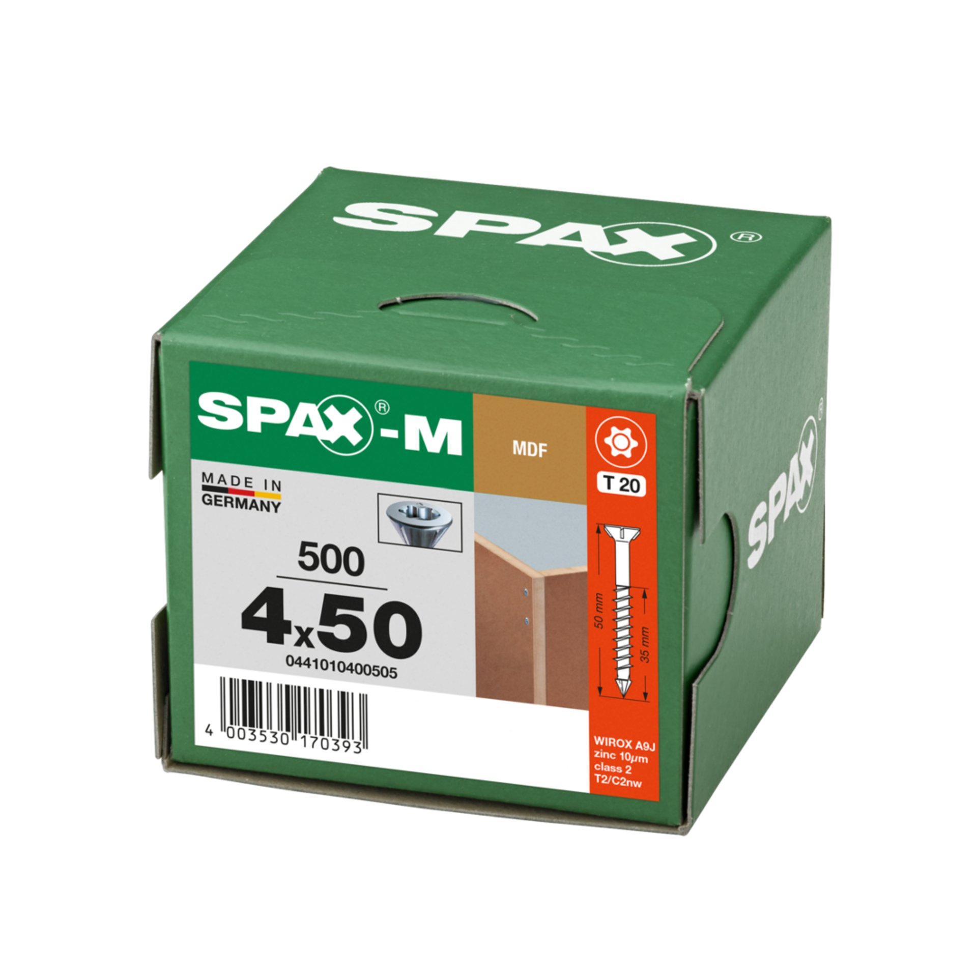 Produktinformationen "SPAX SPAX-M, 4,0 x 50 mm, 500 Stück, Teilgewinde, Senkkopf, T-STAR plus T20, CUT-Spitze, WIROX"