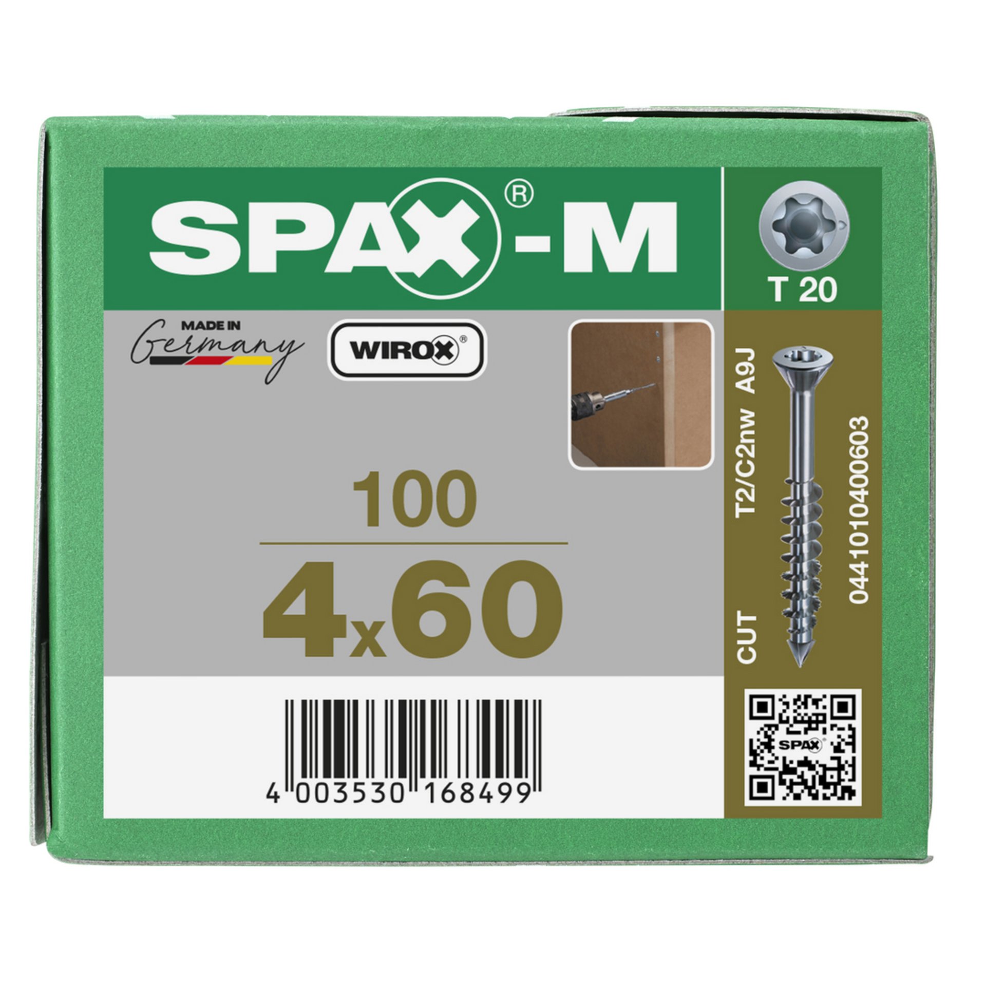 Produktinformationen "SPAX SPAX-M, 4 x 60 mm, 100 Stück, Teilgewinde, Senkkopf, T-STAR plus T20, CUT-Spitze, WIROX"
