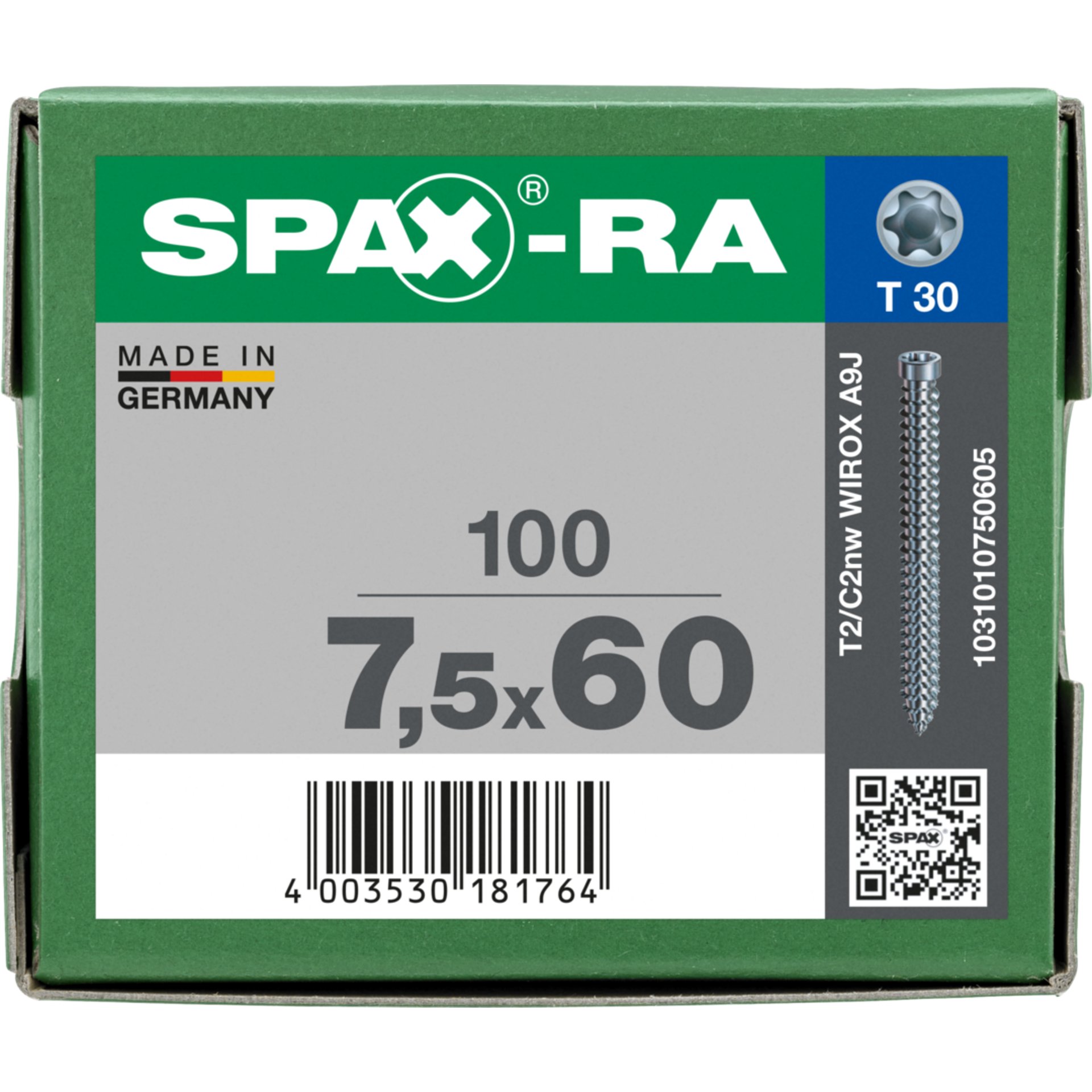 Eigenschaften "SPAX SPAX-RA, 7,5 x 60 mm, 100 Stück, Vollgewinde, Zylinderkopf, T-STAR plus T30, WIROX"
