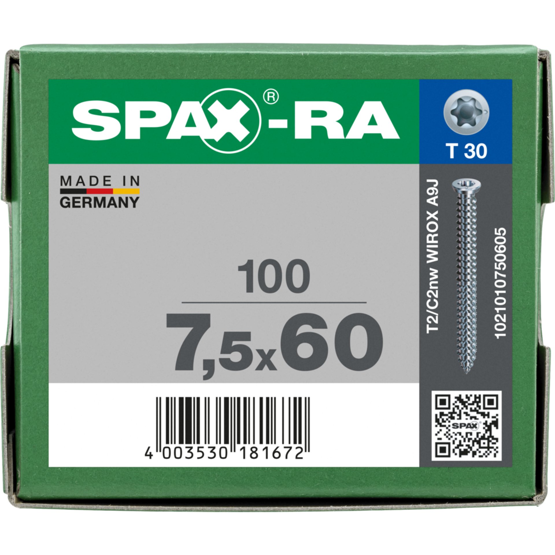 SPAX SPAX-RA, Rahmenanker, 7,5 x 60 mm, 100 Stück, Vollgewinde, Flachsenkkopf, T-STAR plus T30, WIROX