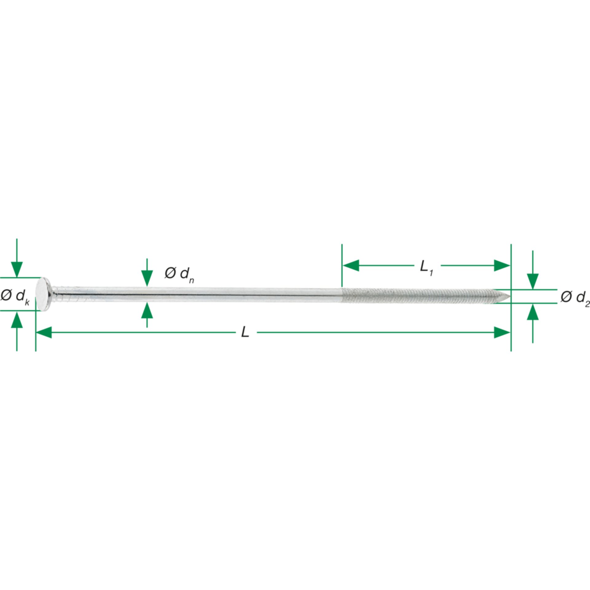 Eigenschaften "SPAX Sparrennagel, 6,0 x 230 mm, 100 Stück, Flachkopf, Ringgewinde, Pyramidenspitze, galvanisch verzinkt"