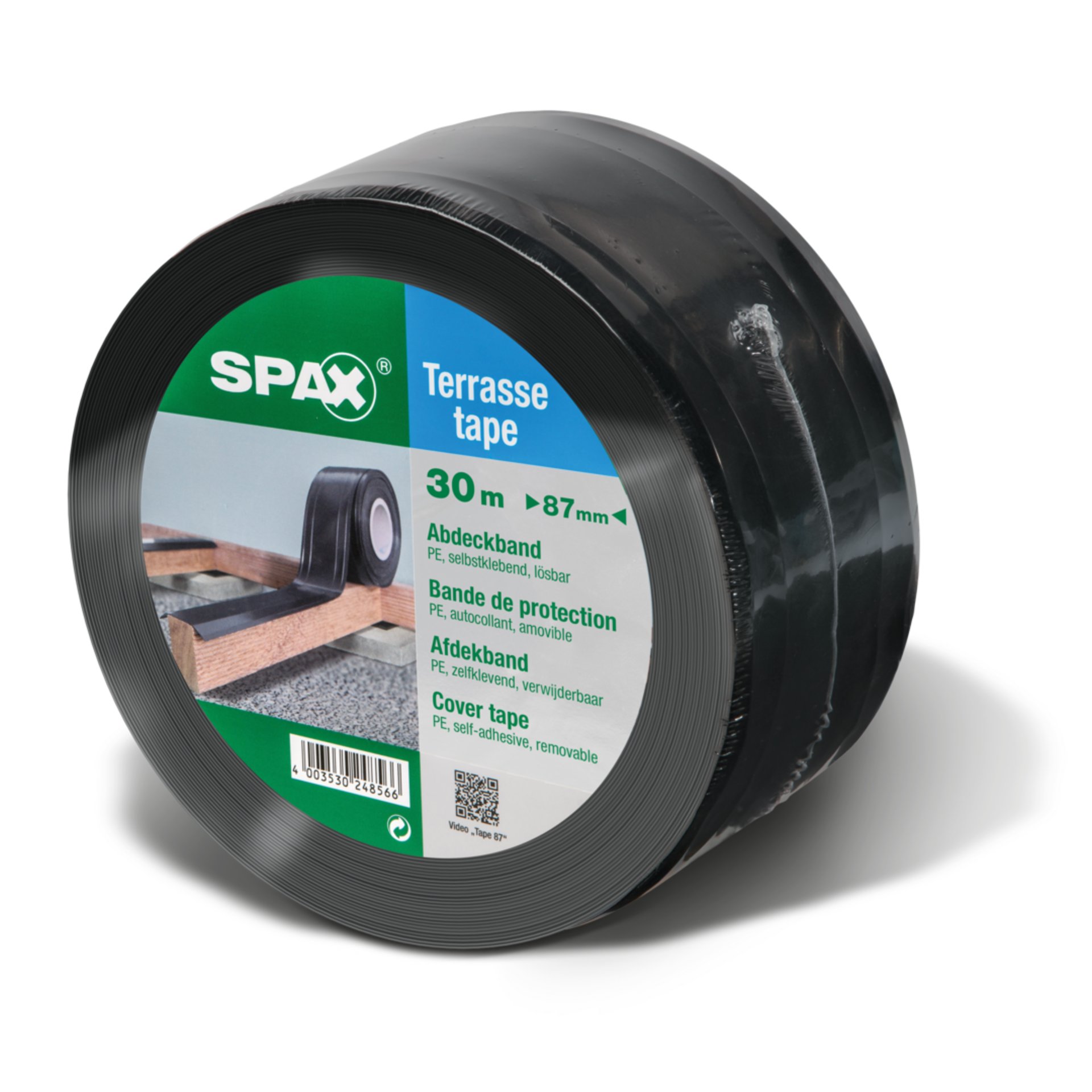 Auf den Unterkonstruktionshölzern kann es trotz der geringen Fugenbreiten zu stehendem Wasser kommen. Das umso mehr, als hier weder Wind noch Sonne für ein zügiges Abtrocknen sorgen können. Damit das Wasser auf Dauer keinen Schaden auf den UK-Hölzern anrichten kann, empfehlen wir den Einsatz unseres SPAX Tapes. Dieses Polyethylen-Band ist UV-resistent, stoßfest, rückstandsfrei lösbar und wird einfach auf die Oberseite der UK-Hölzer geklebt. Das bedeutet für Sie: Sie können die Holzkonstruktion ohne großen Aufwand vor Feuchteschäden schützen und die Lebensdauer der Terrasse verlängern.