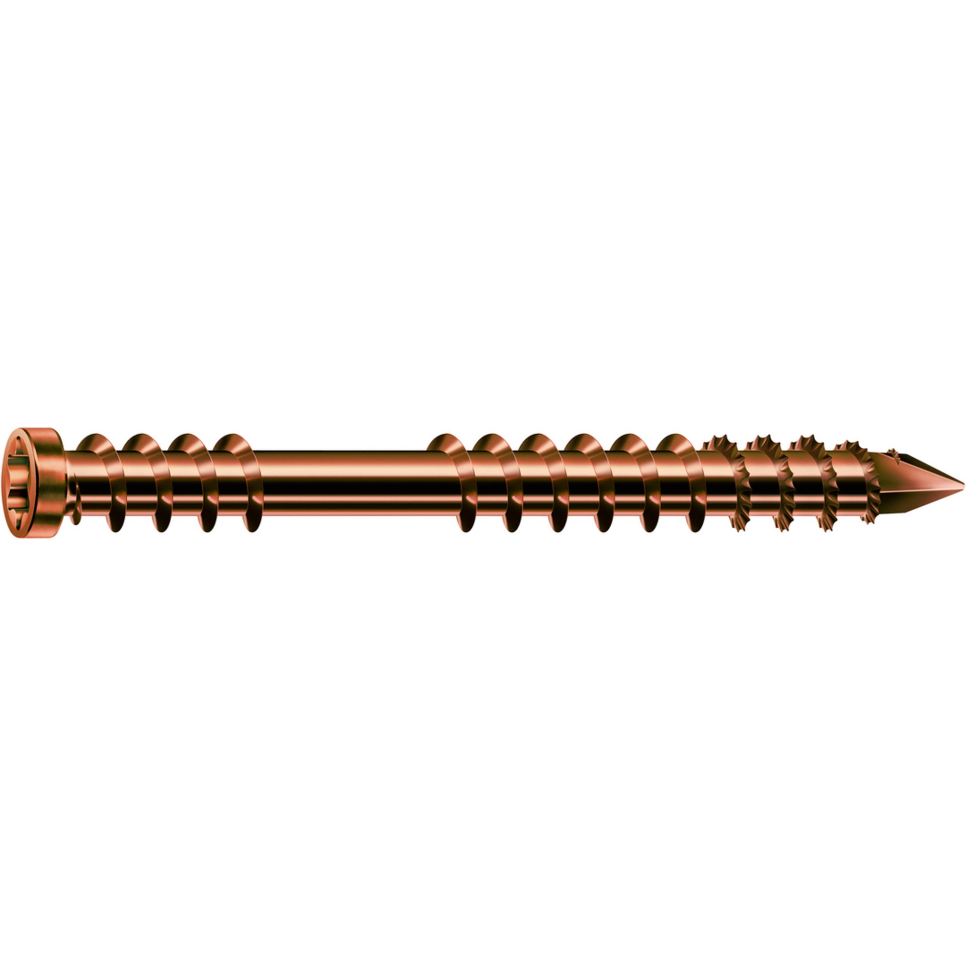 Eigenschaften "SPAX Terrassenschraube, 5 x 50 mm, 200 Stück, Fixiergewinde, Zylinderkopf, T-STAR plus T25, CUT-Spitze, Edelstahl rostfrei A2 antik"