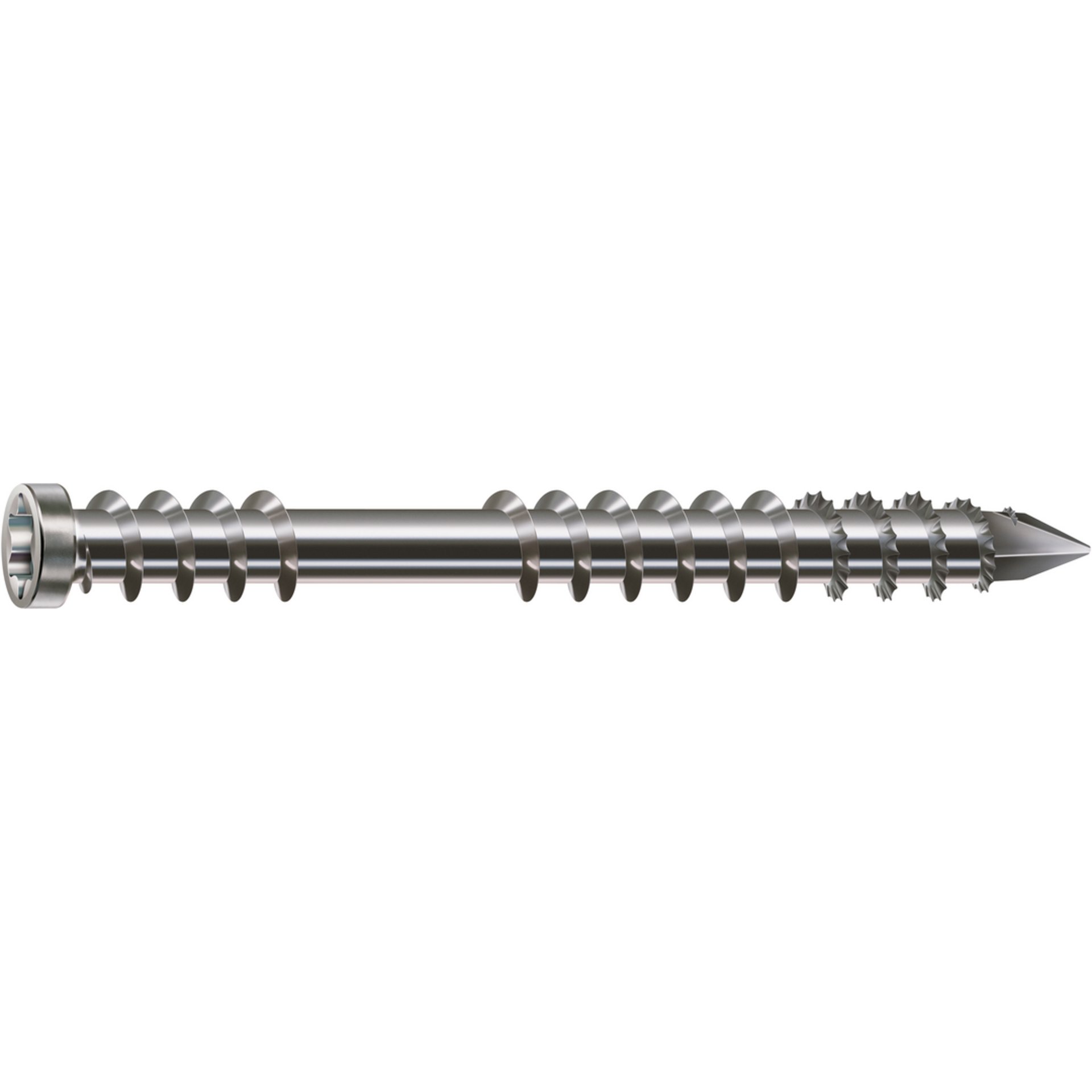 Eigenschaften "SPAX Terrassenschraube, 5 x 70 mm, 100 Stück, Fixiergewinde, Zylinderkopf, T-STAR plus T25, CUT-Spitze, Edelstahl rostfrei A2"