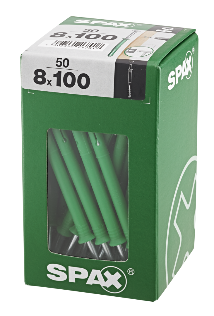 | Variante: | SPAX Typ-ND, Nageldübel 8 x 100 mm, 50 Stück - 4861080801006 |