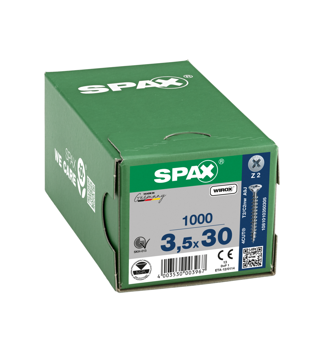 | Variante: | SPAX Universalschraube, 3,5 x 30 mm, 1000 Stück, Vollgewinde, Senkkopf, Kreuzschlitz Z2, 4CUT, WIROX - 1081010350305 |