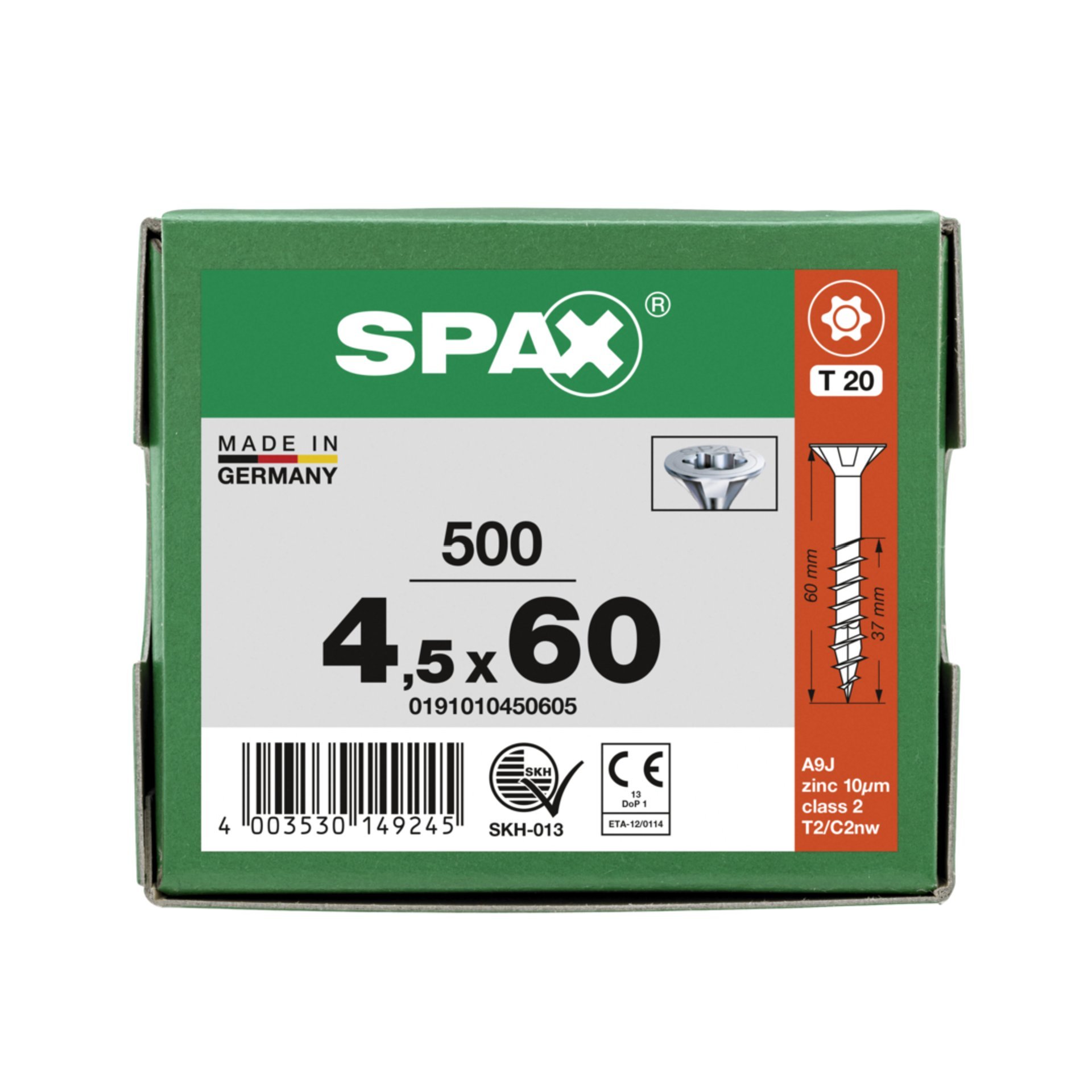 Produktinformationen "SPAX Universalschraube, 4,5 x 60 mm, 500 Stück, Teilgewinde, Senkkopf, T-STAR plus T20, 4CUT, WIROX"