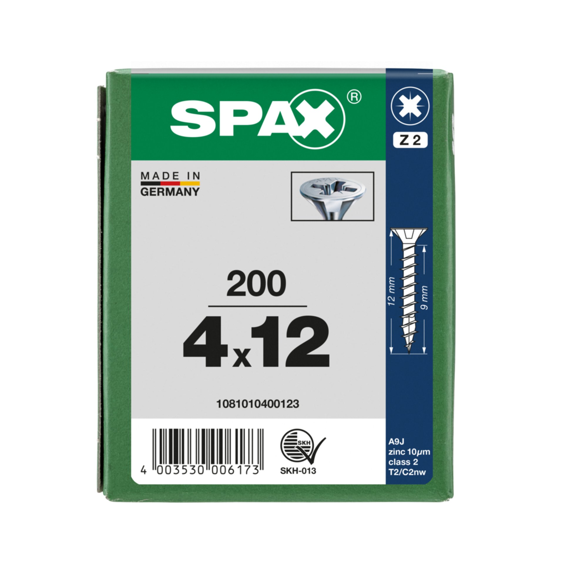 Produktinformationen "SPAX Universalschraube, 4 x 12 mm, 200 Stück, Vollgewinde, Senkkopf, Kreuzschlitz Z2, 4CUT, WIROX"