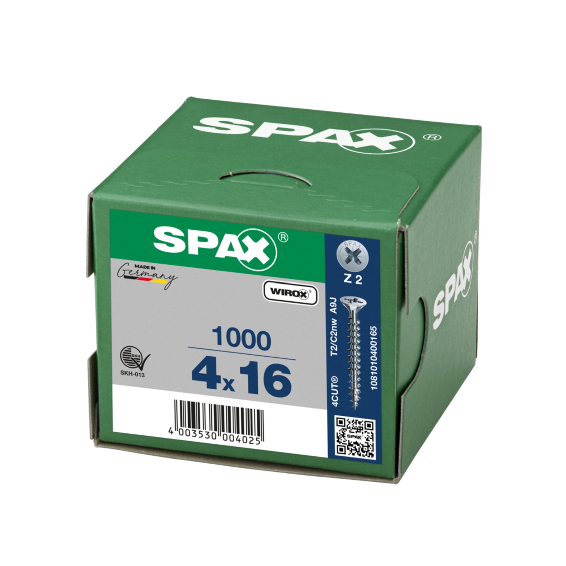 Produktinformationen "SPAX Universalschraube, 4 x 16 mm, 1000 Stück, Vollgewinde, Senkkopf, Kreuzschlitz Z2, 4CUT, WIROX"