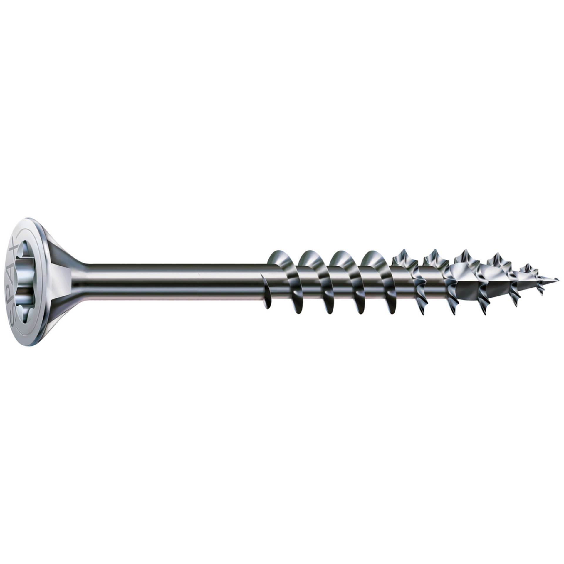 Die Universalschraube ist der absolute Allrounder im Sortiment von SPAX. Sie kann fast alles – zum Beispiel ganz ohne Vorbohren in Nadelhölzer wie Fichten- und Kiefernholz sowie in die gängigen Holzwerkstoffplatten (MDF, Span- und OSB-Platten) eingedreht werden. Dabei spielt unsere Universalschraube ihre Überlegenheit vor allem im Innenausbau- und Möbelbaubereich aus, aber auch außen ist sie mit dem passenden Korrosionsschutz gut verwendbar. Durch ihre besondere Gewindegeometrie ist der Eindrehwiderstand beim Schrauben wesentlich geringer als bei herkömmlichen Schrauben, was nicht nur Ihre Kräfte und Nerven, sondern auch den Akku des eingesetzten Schraubers schont. Ein Aufspleißen des Holzes in Randnähe wird zuverlässig unterbunden. Das bedeutet für Sie: Sie drehen mehr Schrauben pro Akkuladung ein, und Sie müssen sich keine Sorgen um aufgerissene Holzenden mehr machen.