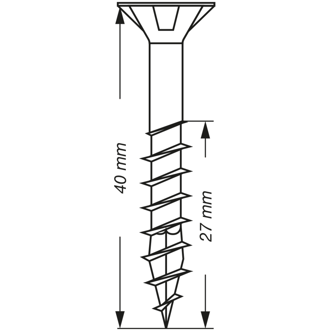 Die Universalschraube ist der absolute Allrounder im Sortiment von SPAX. Sie kann fast alles – zum Beispiel ganz ohne Vorbohren in Nadelhölzer wie Fichten- und Kiefernholz sowie in die gängigen Holzwerkstoffplatten (MDF, Span- und OSB-Platten) eingedreht werden. Dabei spielt unsere Universalschraube ihre Überlegenheit vor allem im Innenausbau- und Möbelbaubereich aus, aber auch außen ist sie mit dem passenden Korrosionsschutz gut verwendbar. Durch ihre besondere Gewindegeometrie ist der Eindrehwiderstand beim Schrauben wesentlich geringer als bei herkömmlichen Schrauben, was nicht nur Ihre Kräfte und Nerven, sondern auch den Akku des eingesetzten Schraubers schont. Ein Aufspleißen des Holzes in Randnähe wird zuverlässig unterbunden. Das bedeutet für Sie: Sie drehen mehr Schrauben pro Akkuladung ein, und Sie müssen sich keine Sorgen um aufgerissene Holzenden mehr machen.
