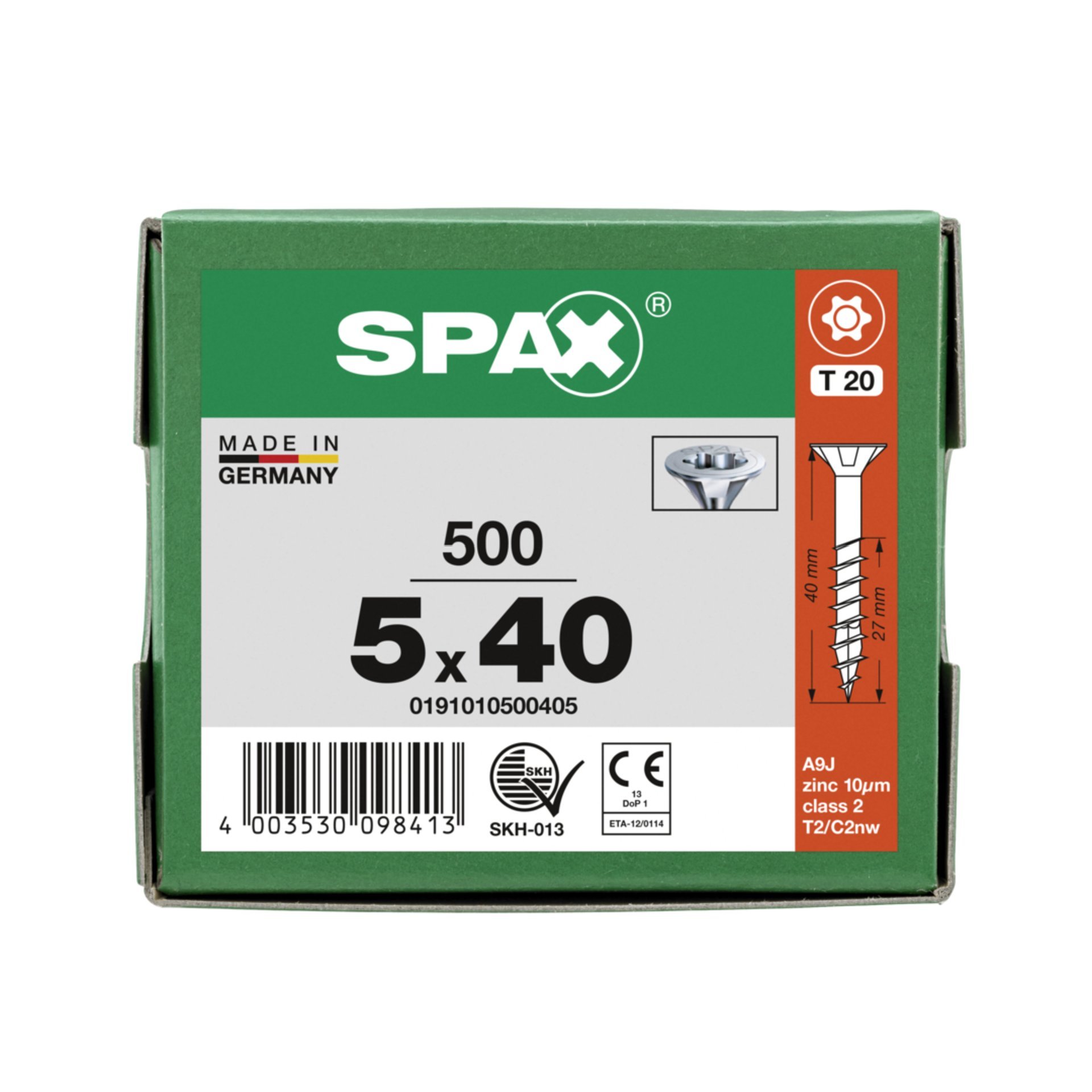 Eigenschaften "SPAX Universalschraube, 5 x 40 mm, 500 Stück, Teilgewinde, Senkkopf, T-STAR plus T20, 4CUT, WIROX"