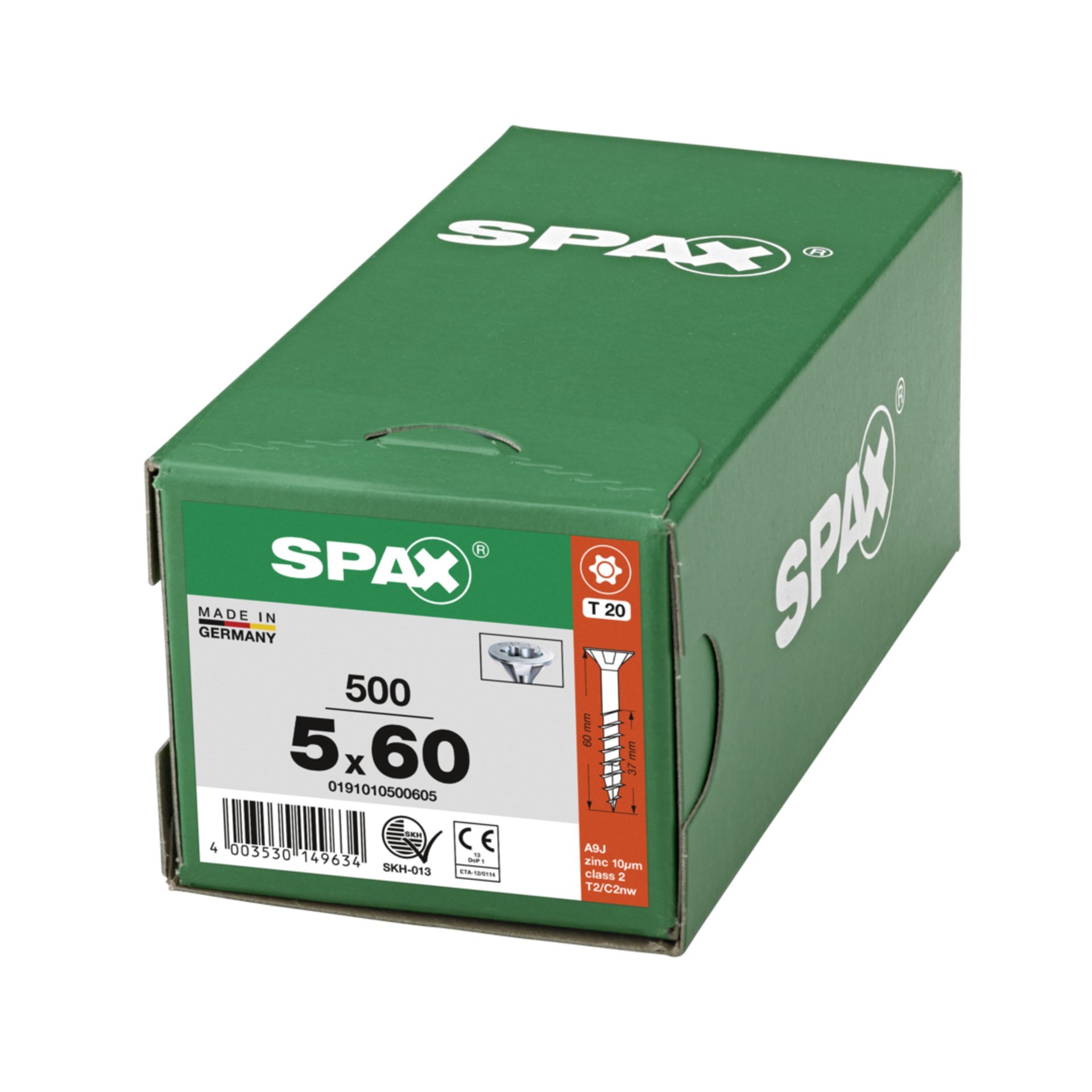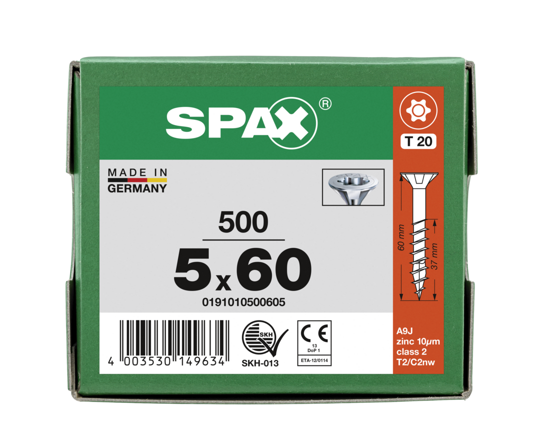 Eigenschaften "SPAX Universalschraube, 5 x 60 mm, 500 Stück, Teilgewinde, Senkkopf, T-STAR plus T20, 4CUT, WIROX"
