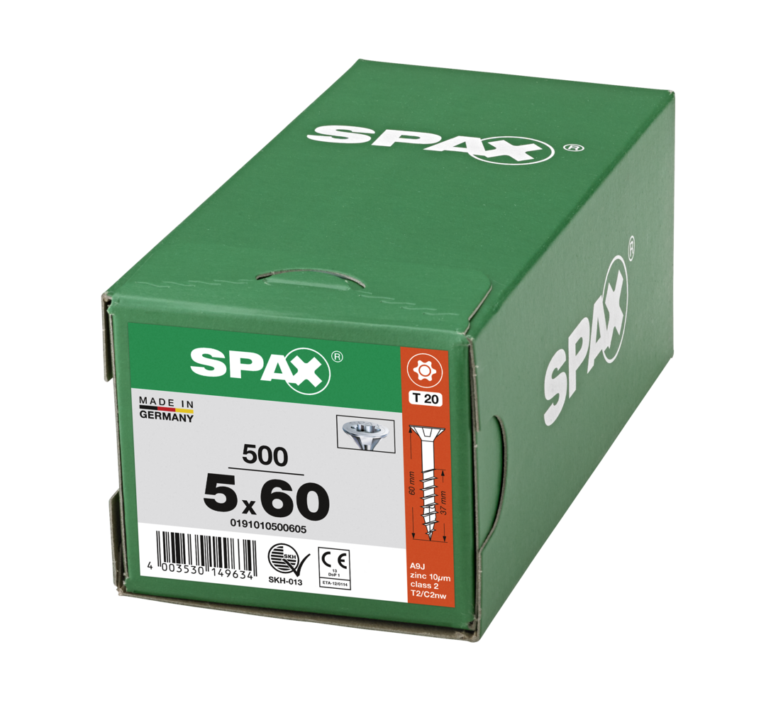 | Variante: | SPAX Universalschraube, 5 x 60 mm, 500 Stück, Teilgewinde, Senkkopf, T-STAR plus T20, 4CUT, WIROX - 0191010500605 |