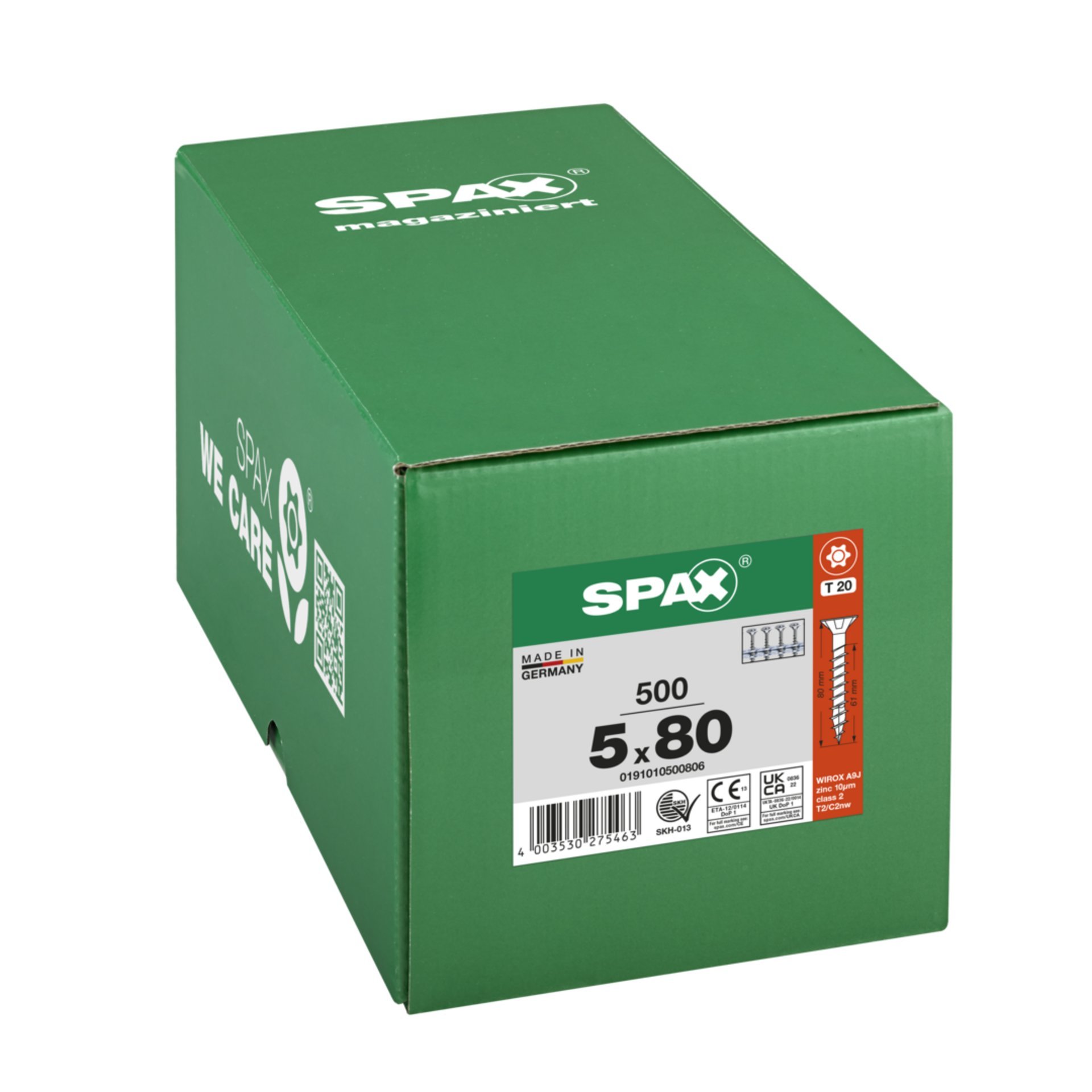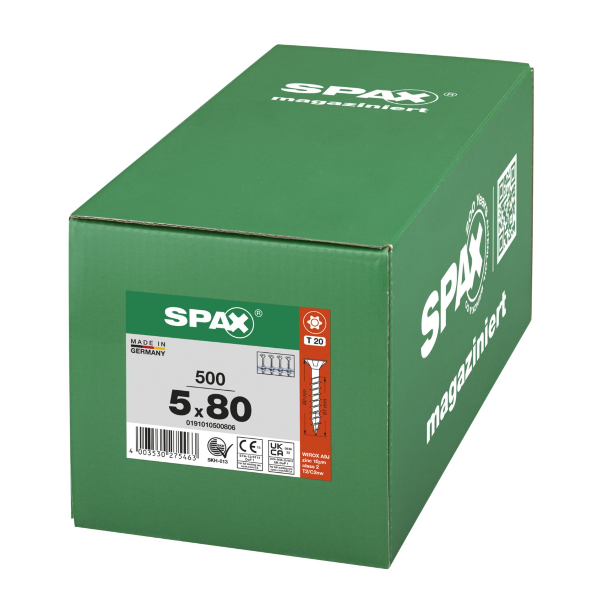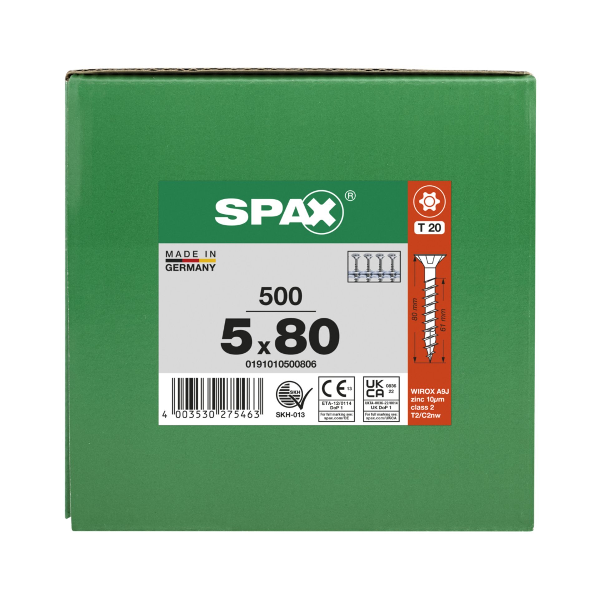 Eigenschaften "SPAX Universalschraube, 5 x 80 mm, 200 Stück, Teilgewinde, Senkkopf, T-STAR plus T20, 4CUT, WIROX"