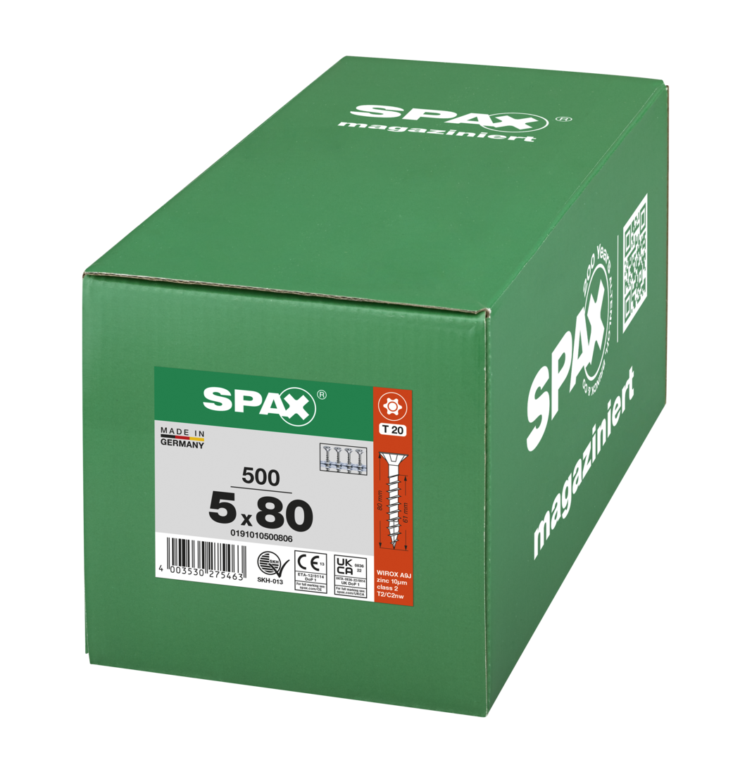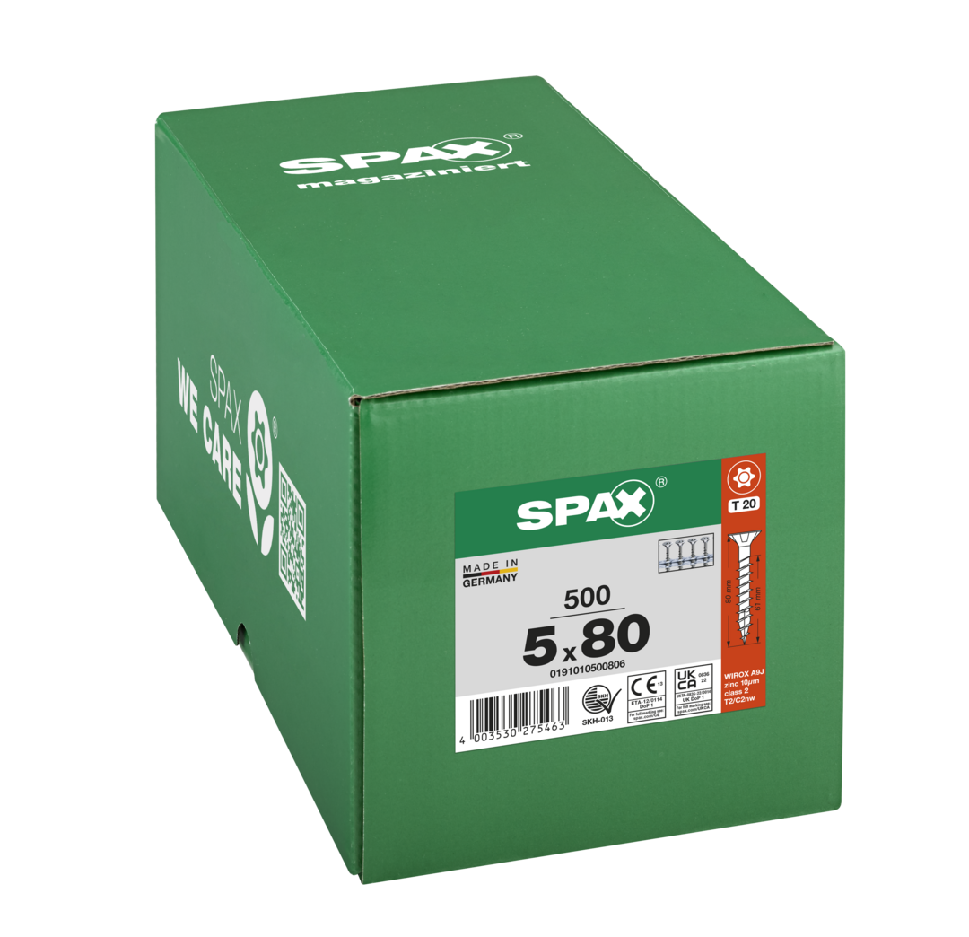 Variante: | SPAX Universalschraube, 5 x 80 mm, 200 Stück, Teilgewinde, Senkkopf, T-STAR plus T20, 4CUT, WIROX - 0191010500805 |