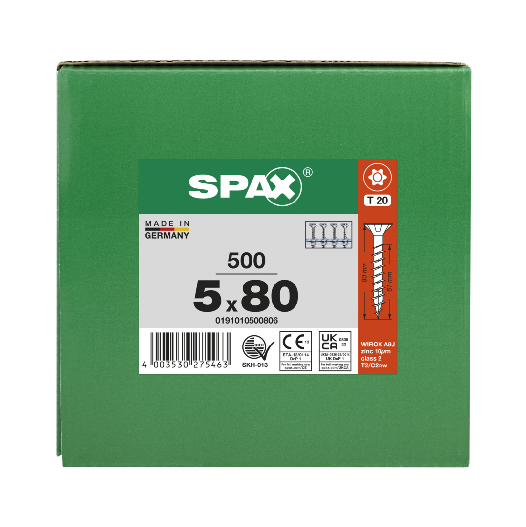 SPAX Universalschraube, 5 x 80 mm, 200 Stück, Teilgewinde, Senkkopf, T-STAR plus T20, 4CUT, WIROX